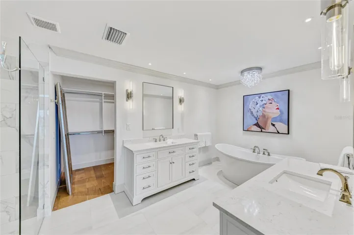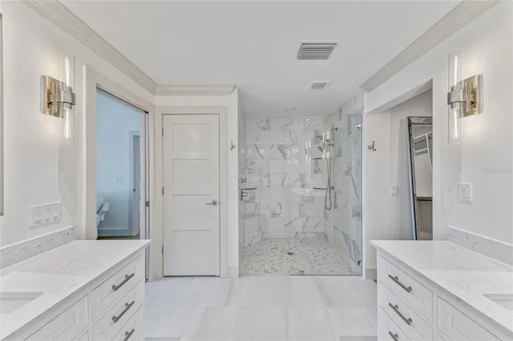 The chef’s kitchen is a true showstopper, showcasing top-of-the-line Thermador appliances, custom cabinetry, and a spacious layout designed for effortless hosting and everyday living. The primary suite is a retreat of its own with dual walk-in closets and a beautifully updated ensuite bath. The second bedroom functions like a second primary, offering a generous bedroom space and its own private ensuite bathroom—ideal for guests or multi-generational living.