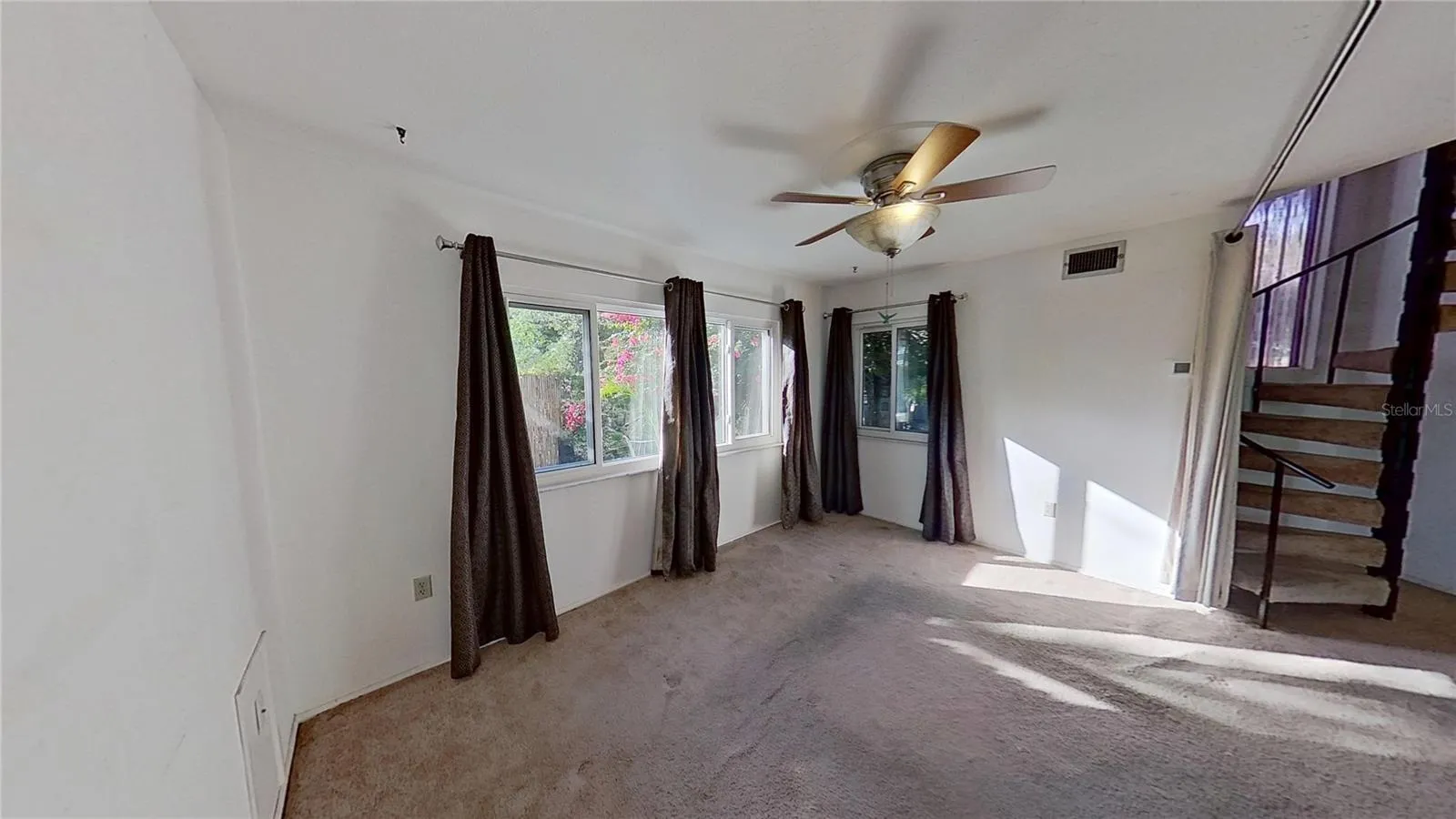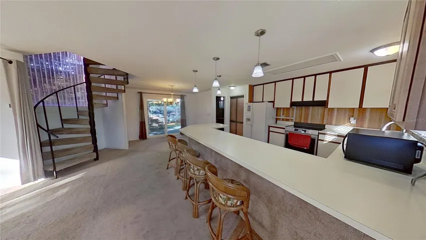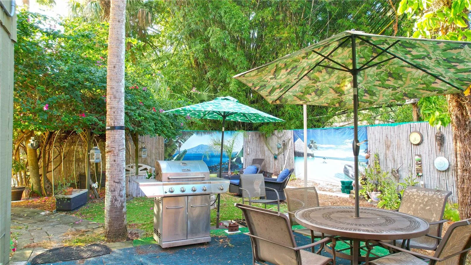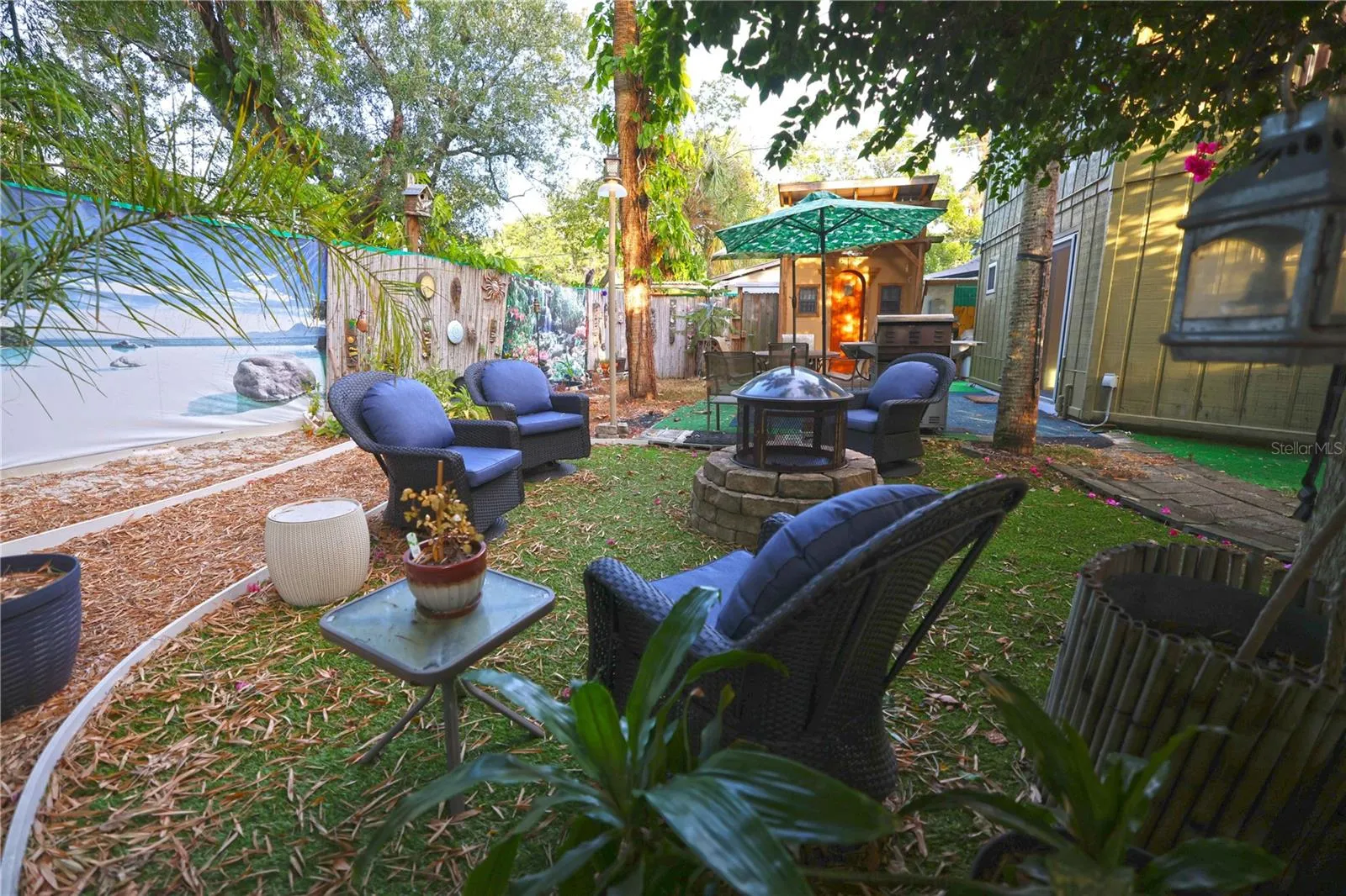 Discover this truly unique 2-bedroom, 1.5 Bath single-family home featuring an amazing backyard oasis. A charming spiral staircase leads to both bedrooms and a full bath upstairs, offering excellent privacy. The property includes a delightful tiny house—great for a playhouse or overnight guests—equipped with A/C, heat and a toilet. This can also be ideal for use as a studio, guest space, or home office. Lots of Parking In front of house on oversized Driveway for vehicles, etc. Enjoy the security of hurricane rated windows plus all three sliders are also hurricane rated.