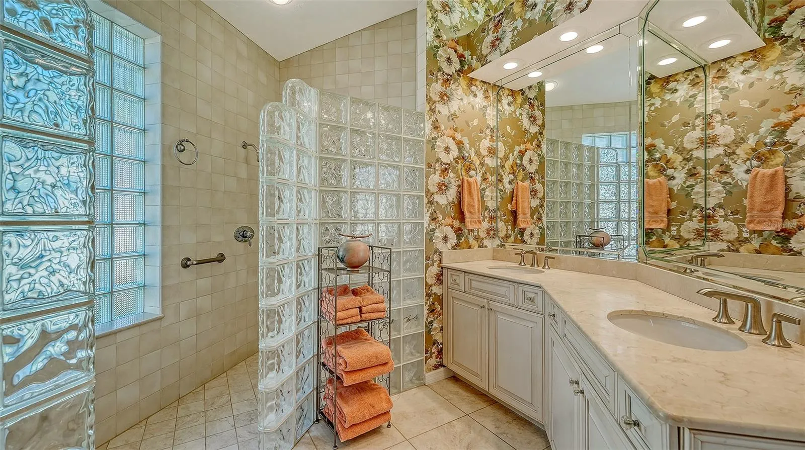The living/dining room combination offers exceptional natural light with a triple slider to the screened lanai and a double slider to the all-weather room, creating a seamless flow for indoor/outdoor living. The spacious eat-in kitchen features abundant cabinetry, granite countertops, a breakfast bar, and another set of large sliders to the additional 12.5 by 12.5 ft all-weather room, enhancing the living space—perfect for casual dining or entertaining.