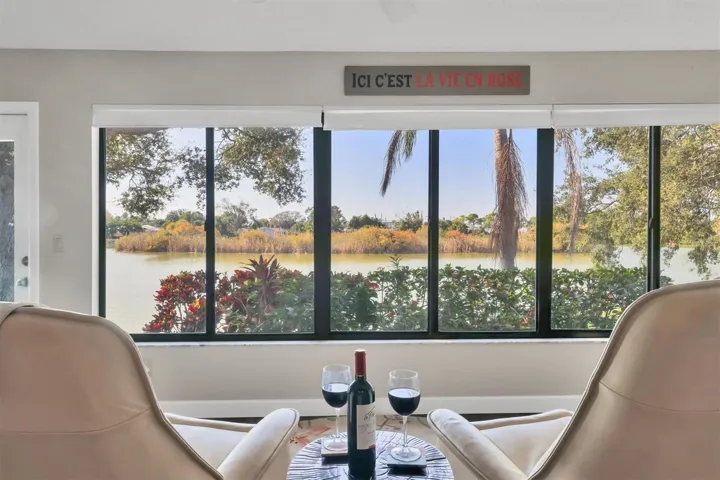 Welcome to this beautifully updated maintenance free community on Mirror Lake. Not only is this home on an Audubon designed bird sanctuary, it’s location is within 10 minutes of both Siesta Key and Interstate 75. This light and bright WATERFRONT home features newer luxury vinyl flooring, neutral paint, custom plantation shutters and Levelor blinds, a newer custom kitchen features pull-out drawers, soft close cabinets, stainless appliances, stone countertops and a pantry. The primary suite and bath have been updated with his and hers walk-in closet storage system. The bathroom also has a spa like oversized shower with inlaid tile, tub and L-shaped granite countertops on updated cabinetry. A new waterfall designed second bath was completed in 2024. Like to entertain? The open concept living room/dining room and lanai has 25 feet of open flooring with bar cabinetry. To complete this amazing home, the garage has built-in storage and an attic. This community has a very active social calendar as well as new pickleball courts, tennis courts a heated and cooled saltwater pool, library and clubhouse. Living here will definitely enhance the Florida resort like lifestyle you deserve.