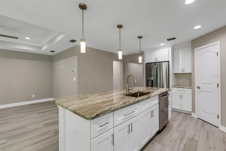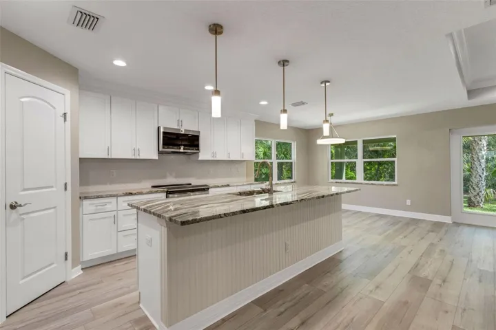 Be the first one to move in this Amazing 3 Bedroom-2 Bathroom- 2 Car-Garage residence built in 2025! Seller/builder will credit 10,000 towards closing cost and give a 1-year home warranty!! Custom kitchen with granite counter tops, stainless steel appliance package, breakfast bar, soft close cabinets, led recess lighting and a walk-in pantry. Open floor plan, coffered ceilings, luxury vinyl plank flooring throughout, Hurricane impact windows-doors- garage door and there is no Flood insurance required. Central sewer and water connected already! You will love this location of this home with lots of privacy and close to all the amenities needed for a simple Florida lifestyle! Several Beaches located very close by, Discover the historic Dearborn street for shopping, art, restaurants, and public transportation. You will not have to worry about repairs since this home is Brand New and comes with a 1-year warranty from the builder/owner or high insurance cost due to the age and location with no flood insurance required. This home is very easy to show and awaits your arrival!