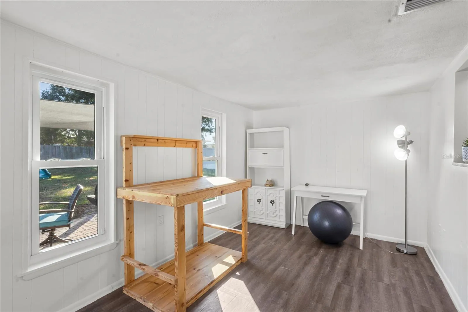 2BR/2BA, 1,232 sq ft living, 1,526 sq ft total under roof, freshly painted interior, freshly painted exterior, wood-look vinyl flooring throughout, oversized lot with large backyard, non-HOA and no restrictions, county location with no city taxes, brand-new 10×10 Tuff Shed conveying (2025, shingled, hurricane anchored, professionally installed), $65,505 total completed-project investment- Aug 2020 to Oct 2025, new GAF shingle roof- May 2025- with fascia boards replaced and prior roof and old solar panels removed, HVAC system replaced including new ductwork- Sept 2022, attic insulation added- Oct 2022 R19 blown, 11 permitted replacement windows- Feb 2021, kitchen and primary bath renovation 2022 with updated plumbing and electrical, modern beachy cabinets and granite countertops, microwave over range vented to exterior, new dishwasher and new stove 2022, hot water heater and plumbing replaced 2020, two exterior doors replaced 2020, custom living room built-ins 2021, backyard 11×12 concrete slab plus sunshade posts and shades, fruit producing lemon and lime trees.