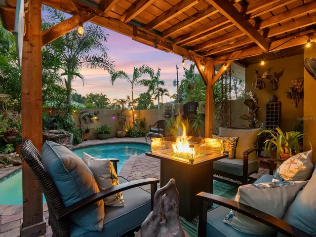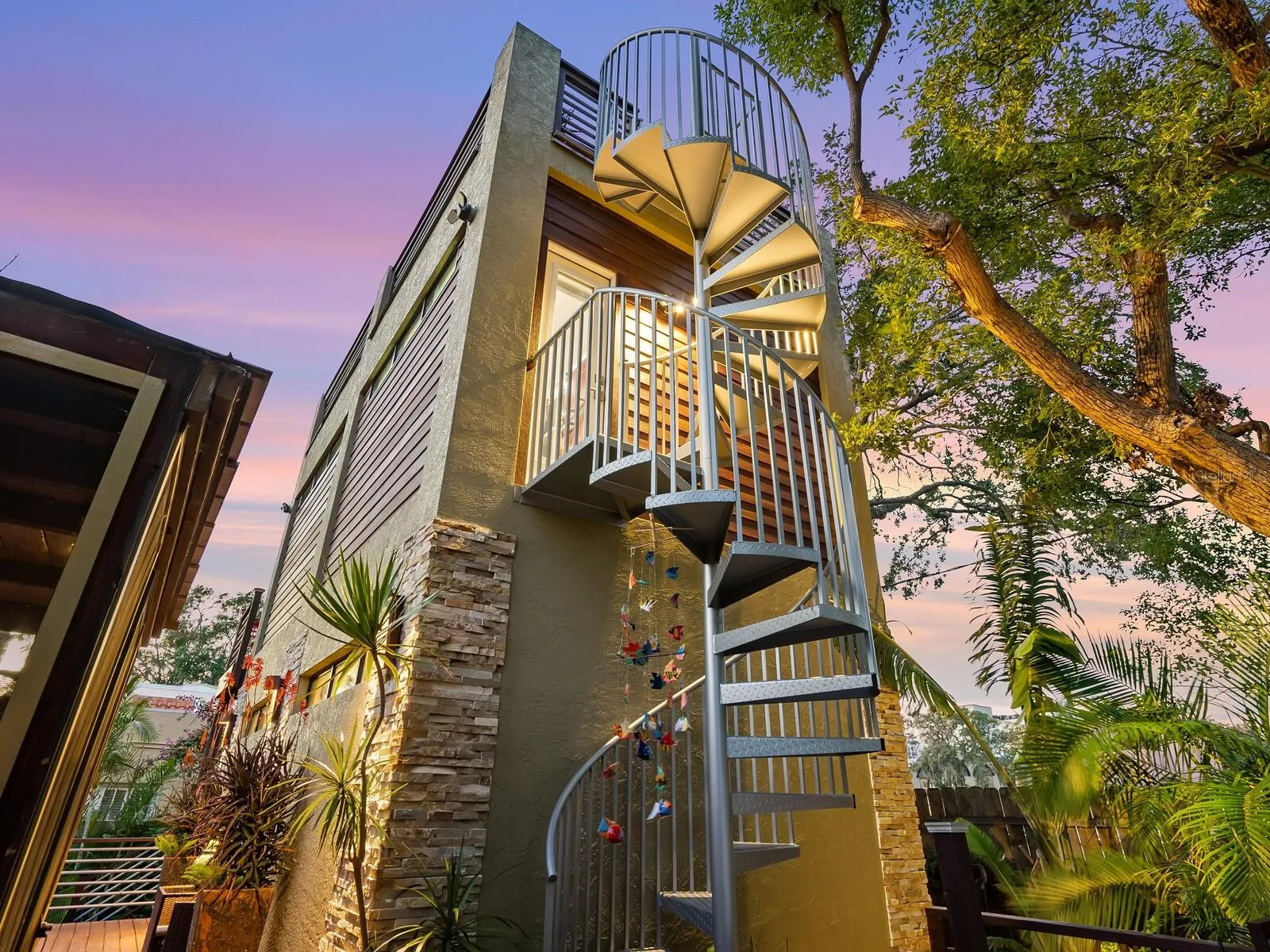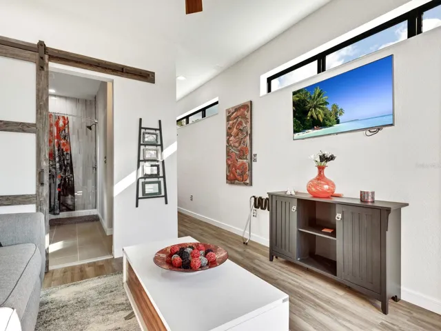 Investment or full time living, this beautiful and unique compound in the heart of Sarasota is just steps away from the downtown, hospital, shopping, and the bayfront is the coveted West of the Trail Hudson Bayou Neighborhood. This one a kind home with a separate art studio and studio apt in the back consists of a beautiful and cozy main house with 2 bdr, 2 baths, dining, updated kitchen with granite countertops and stainless steel appliances was designed and well loved by its owners, one a Ringling Art graduate and both longtime Sarasota residents, for a full time retreat over the past 15 years. Custom details such as ceramic tile, hardwood floors, with the main house completely replumbed just recently in 2025. In 2020, a second building was custom built in the back to allow for an art studio on the first level and regular stairs, as well as a custom-made spiral staircase lead you to a fantastic studio apt/”She Shed” on the second floor for guests and/or Air BNB possibilities in the future. Continue on and gather on the rooftop for views of the city and fireworks with a sneak peak of Hudson Bayou depending upon neighbor’s foliage height. No flooding or damage from past hurricanes. This home remained high and dry and has been lovingly updated and maintained. Home and apt Air BNB vs seasonal rental potential. Rental income potential estimates available.