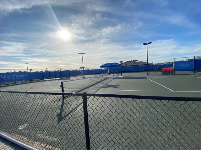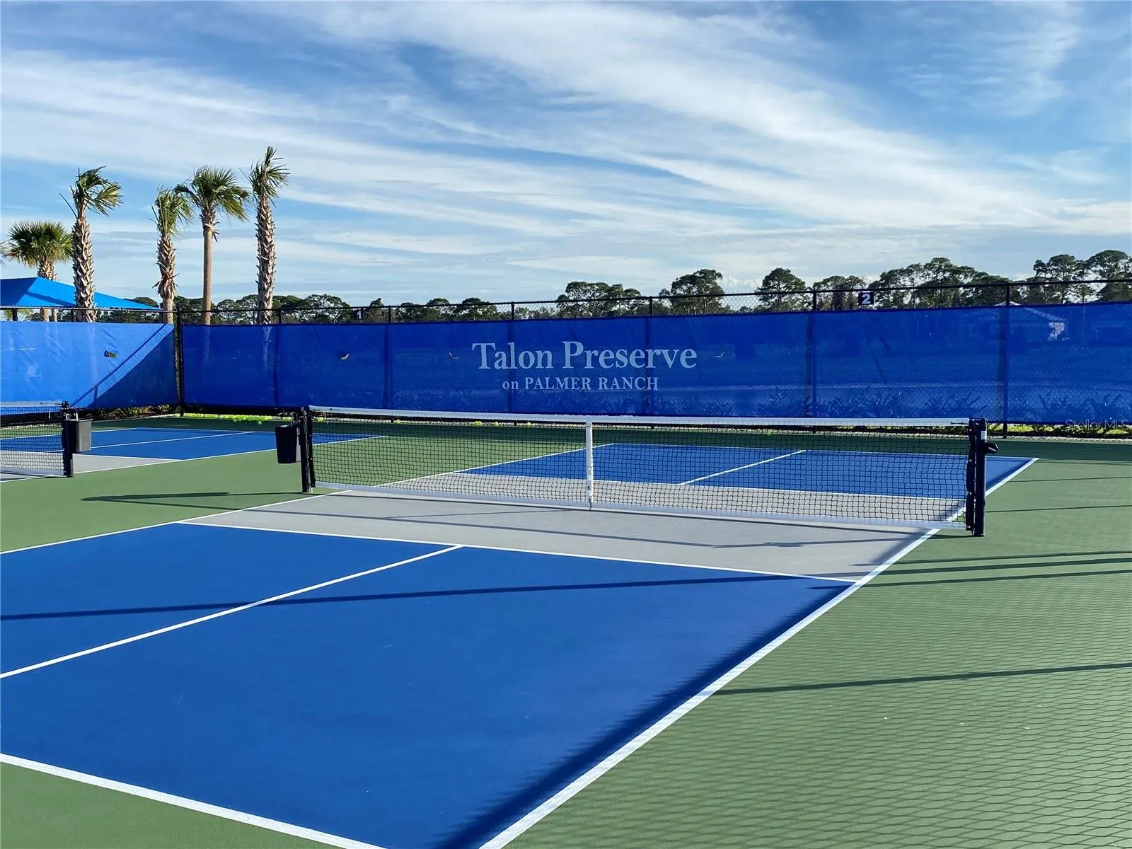 Talon Preserve on Palmer Ranch offers resort-style amenities. It has full service outdoor bar and restaurant, resort pool with rock waterfall, spa, pool bath house, shaded canopy seating, full-time activities director, bocce courts pickleball, tennis, playground, fire pit lounge, bike racks and resort clubhouse. The 20,000 ft resort clubhouse has community and gathering rooms, social lounge, fitness center, group fitness studio, card, and craft room, catering kitchen, locker room and covered terrace and outdoor lounge. This is a gated community with 24-hour guard service.
