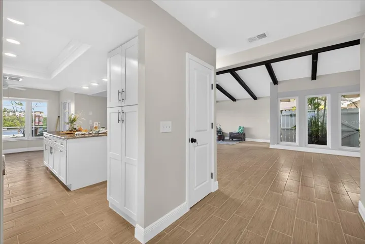 Inside, you’ll find wood-plank tile flooring throughout, vaulted ceilings, and abundant natural light that creates a bright, open feel. The brand-new kitchen has been opened to the living area, offering a modern layout ideal for hosting and everyday living. Additional features include an indoor washer and dryer and a two-car garage.