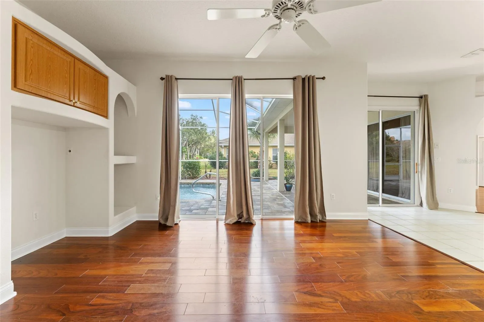 From the moment you enter, you’ll appreciate the soaring ceilings and immediate views of the pool, creating a bright, open, and welcoming atmosphere. The well-designed split floor plan offers excellent flow for everyday living and entertaining. A standout feature is the flexible fifth bedroom, complete with a built-in closet, direct access to the pool and screened lanai, and a nearby full bathroom ideal for a media room, home gym, guest space, or private retreat.