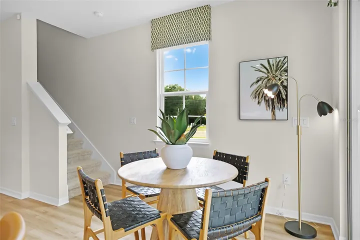 Pre-Construction. To be built. The Malory floor plan at Delaney Reserve is a well-appointed end unit two-story townhome offering 3 bedrooms, 2.5 bathrooms, and a 2-car attached garage in the desirable DeLand, Florida area. The open-concept main level features a spacious great room that flows seamlessly into the kitchen and dining area, creating an ideal setting for both everyday living and entertaining. The kitchen is designed with modern finishes, including granite countertops, stainless-steel appliances, and ample cabinetry, along with a convenient half bath on the first floor for guests. Upstairs, the private primary suite includes a full bathroom and generous closet space, while two additional bedrooms share a second full bath. A versatile loft provides flexible space for a home office, media room, or play area. Additional highlights include a covered lanai, brick-paver driveway, and low-maintenance living with HOA-maintained exterior and landscaping. Buyers still have the opportunity to select their preferred color package, adding a personal touch to their new home. Delaney Reserve offers community amenities such as a dog park, pavilion, and walking trail, and is conveniently located just minutes from Historic Downtown DeLand, Stetson University, shopping, dining, and major roadways—making the Malory an excellent option for buyers seeking space, comfort, and convenience. Low HOA fees and NO CDD. All photos are stock photos of the model.