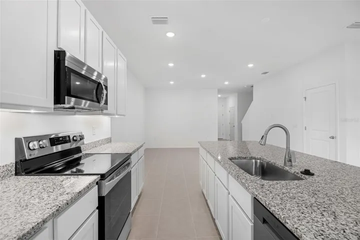Pre-Construction. To be built. The Abbey floor plan at Delaney Reserve is a well-designed two-story townhome offering 3 bedrooms, 2.5 bathrooms, and a 1-car attached garage with a 2-car driveway in the heart of DeLand, Florida. This open-concept layout features a spacious main living area that seamlessly connects the kitchen, dining, and great room, making it ideal for everyday living and entertaining. The kitchen includes modern finishes such as granite countertops, stainless-steel appliances, and ample cabinetry, with a convenient half bath located on the first floor for guests. Upstairs, the private primary suite offers a full bath and generous closet space, while two additional bedrooms share a second full bathroom. A versatile loft provides flexible space for a home office, media room, or play area. Additional highlights include a covered lanai for outdoor enjoyment, a brick-paver driveway, and low-maintenance living with HOA-maintained exterior and landscaping. Buyers still have the opportunity to select their preferred color package, adding a personal touch to their new home. Delaney Reserve is a boutique community located just minutes from Historic Downtown DeLand, Stetson University, shopping, dining, and major roadways, making the Abbey an excellent option for buyers seeking comfort, convenience, and value. Delaney Reserve offers community amenities such as a dog park, shaded pavilion, and walking trail. NO CDD. All photos are stock photos of the model.
