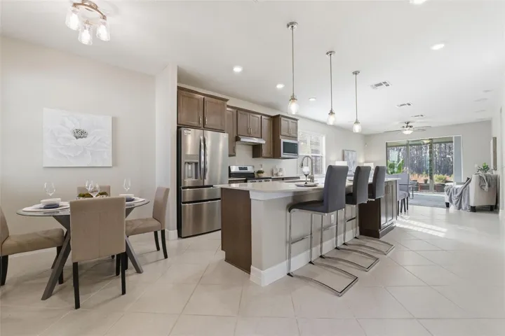 Welcome to resort style living in Del Webb Bexley, a gated 55+ community in Land O’ Lakes! Located at 19440 Ship Wheel Way, this beautifully upgraded Pulte-built Steelcreek floor plan offers 2 bedrooms, 2 bathrooms, and a 2 car garage, perfectly designed for comfort, convenience, and low-maintenance living. This thoughtfully appointed home features an open-concept layout filled with natural light and enhanced by numerous upgrades completed since purchase. The kitchen is equipped with new upgraded stainless steel appliances, including a refrigerator, stove/oven, microwave, and dishwasher ideal for everyday living and entertaining. Both bathrooms have been elevated with smart toilets featuring heated seats and full bidet functionality, adding a touch of luxury. The primary suite includes a custom Closets by Design system, maximizing storage and organization. Enjoy peace of mind and improved water quality with a whole home water filtration system and water softener. The garage has been transformed with Shark Tech flooring and built-in cabinetry, providing a clean, functional, and polished space. Step outside to the screened patio with sun shades, perfect for relaxing year-round, and enjoy the added pavered area just beyond the porch, ideal for outdoor seating or grilling. Del Webb Bexley offers an exceptional lifestyle with world class amenities, including a clubhouse, fitness center, pools, pickleball, walking trails, and a full calendar of social activities. Conveniently located near shopping, dining, and major roadways, this move-in-ready home combines upscale upgrades with an active adult community lifestyle. Don’t miss your opportunity to own this upgraded Steelcreek home—schedule your private showing today!