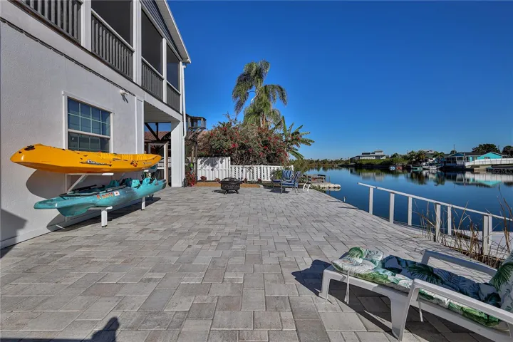 COASTAL NEWER CONSTRUCTION WATERFRONT in Hernando Beach! Built in 2022, This Stunning 3 Bedroom / 2 Bath Home delivers the Florida Lifestyle buyers dream of—73 FT of WATER FRONTAGE, Seawall, and a Floating Dock, plus Spectacular Sunrise Views to start every day right. Enjoy breezy outdoor living from the 27 FT long upper screened porch, and downstairs you’ll love the covered 14×11 porch & Pavered Patio —perfect for grilling, relaxing, or entertaining after a day on the water. Inside, the home shines with easy-care vinyl flooring, crown molding, and charming wood cornices accenting the living room sliders and windows. The bright kitchen features white cabinetry, a built-in pantry, and a breakfast bar for casual meals and conversation. The primary suite is a true retreat with a walk-in closet and an ensuite bath offering dual sinks, a built-in linen closet, and a walk-in shower with seat. Downstairs is where the fun really begins—bring your hobbies, toys, and projects! You’ll have a 2-car carport, RV parking, a 1,000 lb cargo lift, and an impressive 737 SF workshop plus a large shed with a matching metal roof. And for animal lovers, the catio is a standout—ideal for cats or tropical birds (parakeets too)! Located in charming Hernando Beach, you’ll enjoy Gulf access via the nearby community boat lift—just minutes away—making it easy to get on the water for fishing, cruising, and sunset runs. Metal roof, waterfront, newer build, and loaded with extras—this one checks all the boxes. Live the coastal lifestyle you’ve been waiting for!