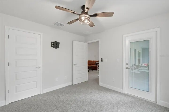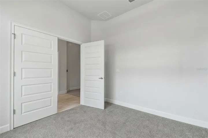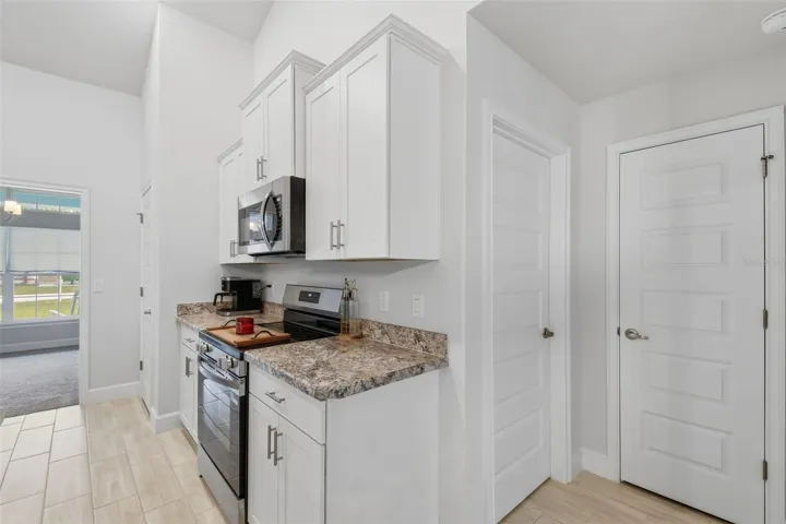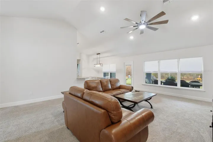 One or more photo(s) has been virtually staged. Don’t wait to build, RUN to 14351 Carolina Chickadee Rd, a beautifully maintained New residence set in the peaceful natural surroundings of Weeki Wachee in Hernando County, Florida. This better-than-new, barely lived-in 2,169 sq ft Adams Home showcases a timeless Craftsman elevation, offering four bedrooms, two bathrooms, and a spacious three-car garage, all located on a quiet dead-end street. The thoughtfully designed split-bedroom floor plan provides privacy and comfort, highlighted by a gracious owner’s suite featuring a tray ceiling with crown molding and a spa-inspired bath complete with a separate tiled shower with lighting, a soothing garden tub framed by a fixed window, and dual vanities. The kitchen and baths are elegantly appointed with high-definition beveled-edge countertops, classic white Shaker cabinetry with pull bars, and stainless-steel appliances, including an upgraded Frigidaire French-door refrigerator. Tastefully upgraded lighting fixtures and ceiling fans enhance the home’s refined, move-in-ready ambiance. Durable wood-look plank tile adds both beauty and practicality throughout all wet areas. Additional details include a welcoming entry foyer, stately double solid doors with sidelight glass opening to a voluminous living room. Spacious floorplan is open yet offer formal dining room and office/den/play or craft room, plus inside laundry room pre-plumbed for a utility sink, washer /dryer, two garage door openers with remote access, and a Vivint security system. Outdoor living is equally inviting, with a charming covered front porch and an expansive rear covered lanai overlooking a private, wooded, almost half-acre setting—an ideal backdrop for both quiet relaxation and elegant entertaining. Located in desirable Hernando County, residents enjoy easy access to the crystal-clear Weeki Wachee Springs, kayaking and paddleboarding on the Weeki Wachee River, nearby golf courses, nature preserves, and scenic hiking trails. Convenient access to shopping, dining, medical facilities, and major roadways makes commuting to Tampa, Clearwater, and the Gulf Coast beaches both easy and enjoyable. This exceptional home blends classic Craftsman charm with modern sophistication while offering a lifestyle rich in natural beauty, comfort, and convenience. Some photos virtually staged.