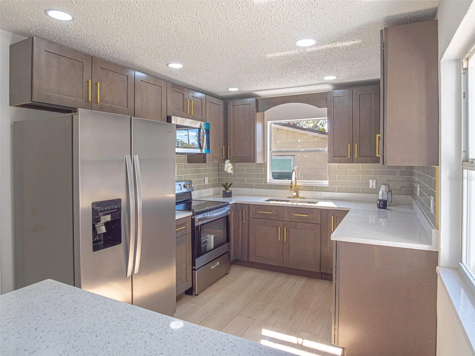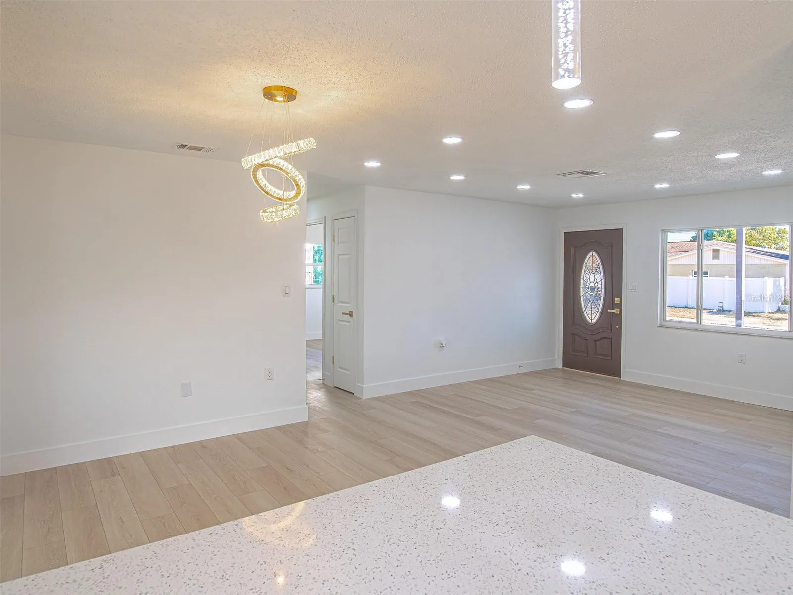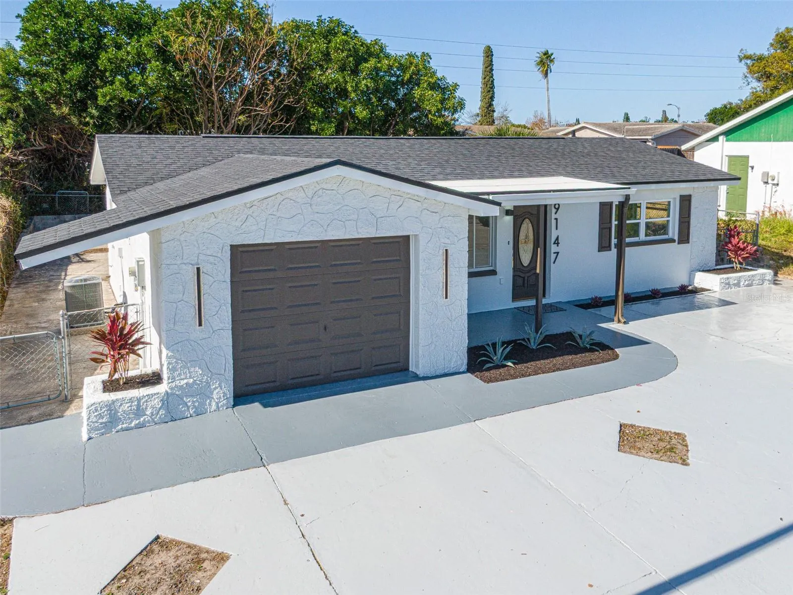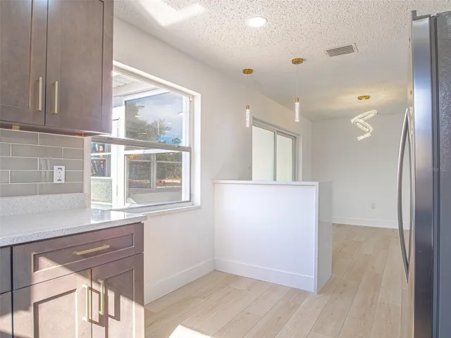 A true expression of pride in ownership, this beautifully updated 2-bedroom, 2-bathroom residence invites you to experience comfort, style, and functionality at every turn. From the moment you enter, you are welcomed by a bright and airy open-concept living and dining area that seamlessly flows into the open kitchen and extends toward a spacious, fully fenced backyard—perfect for both relaxation and entertaining. This home is truly beyond move-in ready, featuring a thoughtfully curated series of 2025 upgrades, including a freshly painted interior in timeless neutral tones, a brand-new charcoal roof (2025), and a completely remodeled kitchen showcasing quartz countertops (2025), solid wood cabinetry, and all-new modern appliances. Both bathrooms have been tastefully renovated (2025), complemented by new luxury LVP flooring throughout the home. Additional major improvements include a brand-new A/C system (2025), a new tank water heater (2025). The enclosed lanai, surrounded by windows, creates a versatile outdoor living space that opens to a generous concrete patio—ideal for hosting gatherings or enjoying weekend barbecues. The expansive front driveway comfortably accommodates up to five vehicles, adding both convenience and curb appeal. Ideally located in a NO FLOOD ZONE community with NO HOA and NO CDD, this exceptional property offers the freedom and lifestyle Florida is known for. Just minutes from shopping centers, schools, restaurants, and beautiful beaches, with easy access to Tampa and Clearwater, this home presents a rare opportunity to own a turnkey property in a highly desirable location.