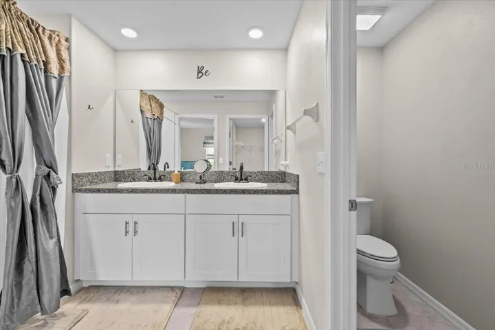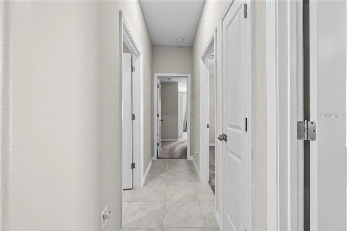 Welcome home to peace and nature! This beautiful 4-bedroom, 2-bath, 2-car garage home offers a quiet retreat backing up to a large, county-owned parcel—no backyard neighbors! Step inside and enjoy the open-concept layout, perfect for modern living. The kitchen features white cabinetry, ample storage space, and sleek black appliances, all overlooking the dining area and spacious great room. Sliding glass doors lead to your private backyard, ideal for relaxing or entertaining. The split floor plan provides privacy for the primary suite, which includes a large walk-in closet and a bright ensuite bathroom with dual sinks, a private water closet, and a walk-in shower. Each of the additional bedrooms offers generous space for family, guests, or a home office. Located in a peaceful setting yet close to shopping, dining, and major highways, this move-in-ready home combines comfort and convenience in one perfect package.