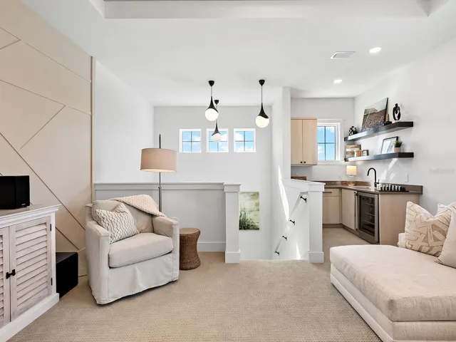 Elegant former model home filled with resplendent upgrades on a lakeside setting could be yours! This 2023 built model home offers every upgrade available on a premium homesite on Lake Ibis in Lakehouse Cove, just minutes from Waterside. This home’s 3,500 SF is brimming with luxurious upgrades and modern style including engineered hardwood flooring, custom coffered ceilings, feature walls, designer light fixtures, 2025 window shades and plantation shutters, and a warm blend of textures and colors throughout. From the charming front porch you’re welcomed home with instant views of the lake from 9’ impact sliding glass doors. The central great room is the perfect place to gather, centered on a spectacular custom feature wall with fireplace, glass display shelving, and custom wood entertainment niche design. The adjacent formal dining room is flexible for upscale dinners to casual weeknights. Entertaining outdoors is just as delightful on the travertine lanai with views of Lake Ibis through the panoramic screen enclosure and surrounded by 2025 upgraded landscaping, covered entertaining area with ceiling fan, and 2025 outdoor kitchen including stainless steel Bull bar fridge and 30” grill. The heated pool and spa is the ideal place to take the northern views over the lake, and also includes water features, sunshelf, and 360 degree spill edge on the spa. Inside, chef’s will love the modern design of the kitchen with warm wood textured cabinetry on the perimeter and smart espresso cabinets on the island, counter-to-ceiling white beveled backsplash, large modern pendant lights, quartz counters, 2025 reverse osmosis system, and a stainless steel appliance suite by GE Monogram including a range with oven and gas burners, additional wall oven, microwave, refrigerator, and dishwasher. Extra storage is found in the custom butler’s pantry with wine refrigerator, coffee area, and floating shelving that’s connected to the spacious walk-in pantry with custom shelving. Even working from home is a joy at this residence with a lakeside rear study featuring frosted glass barn door for privacy, tray ceiling with uplighting, and impact sliders to the lanai. The nearby powder bathroom doubles as both a pool bath and a guest bath for even more functionality. The upscale custom finishes carry into the primary suite with coffered and shiplap ceiling, shiplap and mirrored feature wall, impact sliders with sparkling lake views, and dual walk-in closets. The spa-like en-suite bath showcases dual split floating vanities, designer wallpaper, and an oversized walk-in shower with multiple showerheads and frameless glass enclosure. Guests have the ultimate choices in privacy, with one guest bed with en-suite bath on the main level, and a second guest bedroom with adjacent bath on the upper level. Also on the upper level is the ultimate bonus room featuring a custom wet bar with wine refrigerator and floating shelves, custom ceiling, and custom designed feature wall. Additional spaces include a laundry with lots of cabinetry, mudroom entry, and 3-car side-loading garage. Peace of mind is ensured with impact windows and doors, 2025 Generac 24kw whole-house generator, and 2025 Generac surge protection. Lakehouse Cove offers the best amenities in Waterside with an upscale clubhouse, lakeside pool and spa, fitness center, playground, dog park, walking trails, tennis and pickleball courts, dock house for lake access and kayak storage.