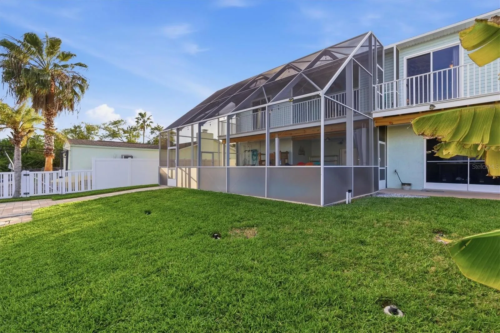 Designed for relaxed coastal living, the home features screened second-story porches front and rear, capturing cooling breezes, canal views, and partial Gulf views—perfect for sunrise coffee or sunset cocktails. The screened pool area creates a private oasis for entertaining or unwinding after a day on the water. A convenient garage bathroom adds functionality for pool and boating days.