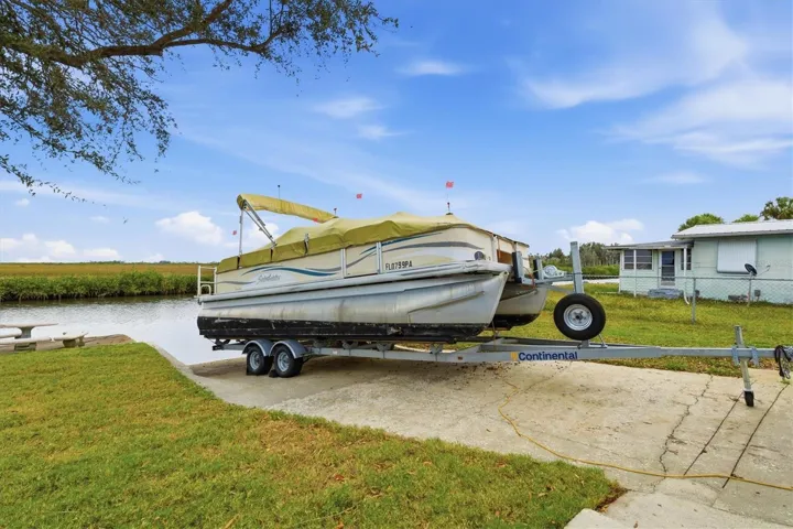 The oversized detached garage is a standout feature for boaters. Designed with large pull-through doors on both sides, it allows you to back your boat directly from the garage into the canal and return it to covered storage after a day on the water. With ample space for larger vessels and an additional storage loft, this is the ultimate boater’s workshop.