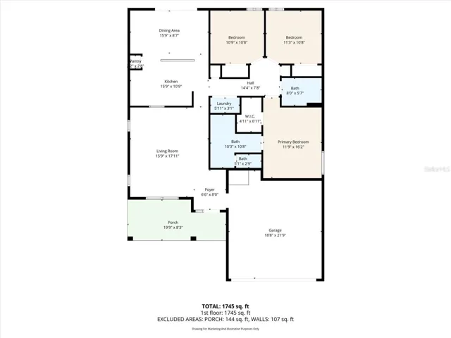 The brand-new kitchen features quartz countertops, modern cabinetry, a spacious island, pantry storage, and a backyard view. Both bathrooms have been fully renovated, giving the home a fresh, updated feel. Additional features include newer appliances, inside laundry with washer and dryer (2024), and a brand new roof to be installed prior to closing and a 1-year home warranty, both offering added peace of mind.