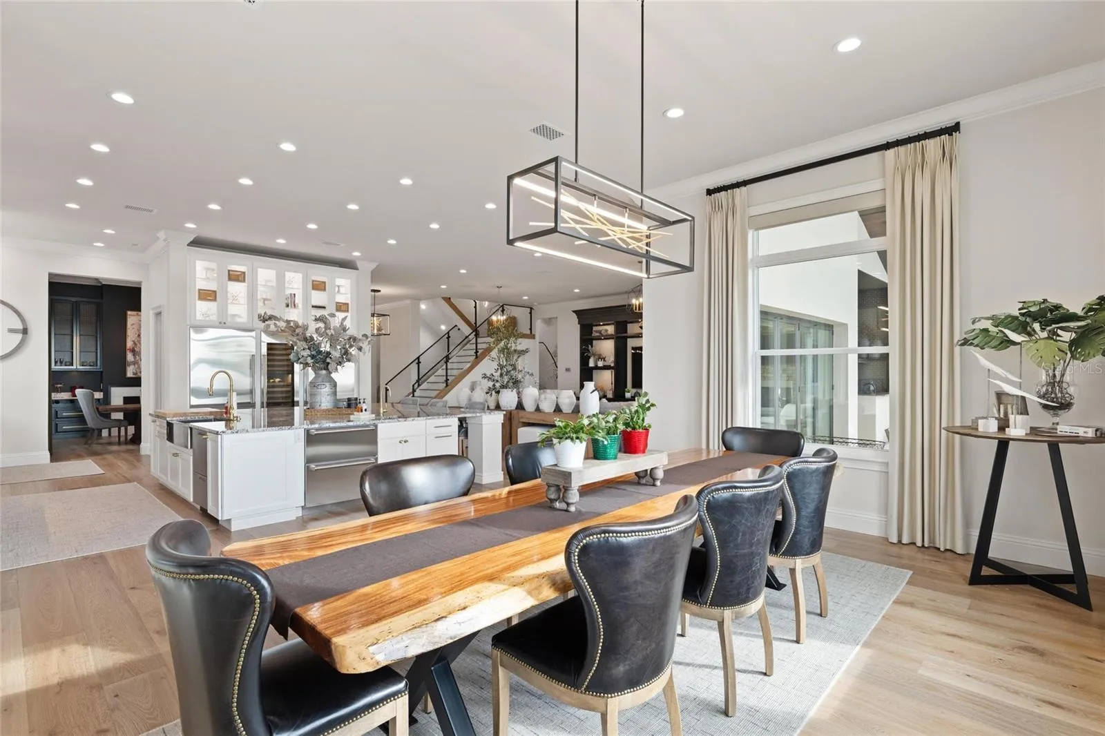 The kitchen serves as a functional and visual anchor, offering ample custom cabinetry, substantial counter space, and an efficient layout that opens naturally to surrounding living and dining areas. Whether preparing daily meals or hosting guests, the kitchen remains connected to the home’s social spaces and waterfront views.