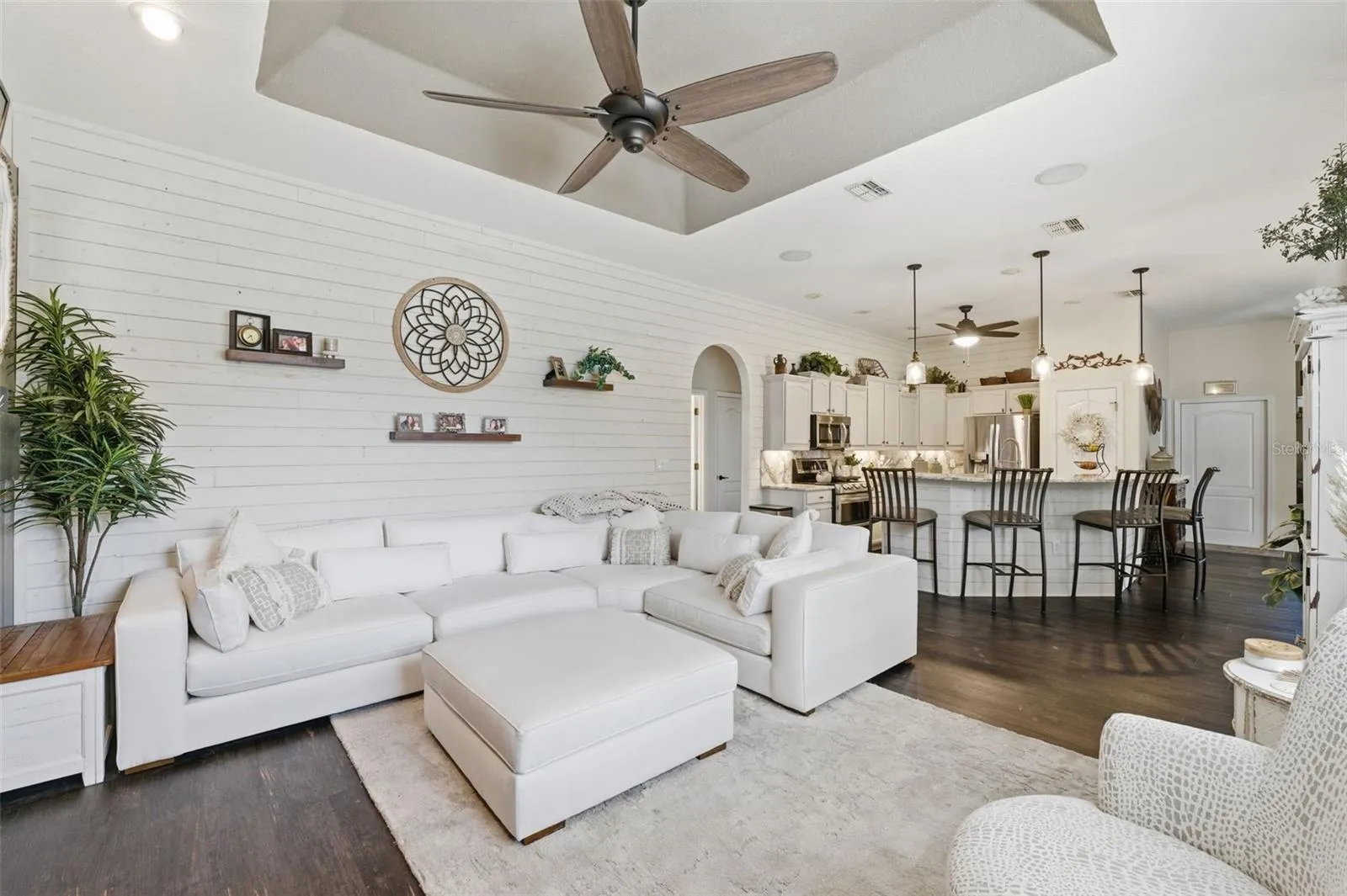 Tucked away within the Plantation Estates Community and set on a spacious half-acre lot, this beautifully appointed home invites you to experience comfort, openness, and relaxed Florida living from the moment you arrive, with a well-maintained lawn, landscape lighting, and a paver-accented entry. Spacious two-car garage equipped with a new garage door opener and springs. Inside, the foyer opens with luxury vinyl flooring throughout and soaring vaulted ceilings that create clear sight lines to the dining, kitchen, and living areas, immediately giving the home an airy, connected feel, with a Vivint alarm system with exterior cameras that adds peace of mind. To the left, a flexible office or bonus room sits behind glass double doors and is filled with natural light from a large window. The dining area is framed by decorative archways supported by columns and enjoys views toward the rear porch, flowing seamlessly into the new kitchen featuring quartz countertops, solid wood cabinetry, a pantry, a breakfast bar, a garbage disposal, stainless appliances replaced in 2023, and a reverse osmosis drinking water system paired with a whole-home water softener. This chefs dream is a show stopper. Just beyond, the living area offers vaulted ceilings, an electric fireplace, and direct access to the outdoor living space, drawing your attention to the backyard retreat. The primary bedroom is privately positioned with vaulted ceilings, luxury vinyl flooring, custom-designed closets, and direct access to the rear porch and pool, leading into an en suite bathroom finished with solid countertops and a glass-enclosed step-in shower. On the opposite side of the home, bedrooms two and three mirror each other with tray ceilings, walk-in closets, and matching flooring, with a shared bathroom between them that also features a glass-enclosed step-in shower. A functional laundry room includes a sink and overhead cabinetry for added convenience. Outdoors, the paver-finished lanai opens to a newly installed fully heated saltwater pool with a heated spa, while an adjacent paver patio with a stone firepit creates an inviting space for evenings under the stars, all supported by major upgrades including a new roof, new AC system, and a new septic system with drain field completed in 2024. Living here places you close to Weeki Wachee Springs with its crystal-clear waters and kayaking, nearby Gulf Coast beaches ideal for sunsets and fishing, scenic parks and nature preserves for walking and wildlife viewing, and convenient access to shopping, dining, and everyday amenities, making this a home where thoughtful upgrades, space, and the Florida lifestyle come together effortlessly.