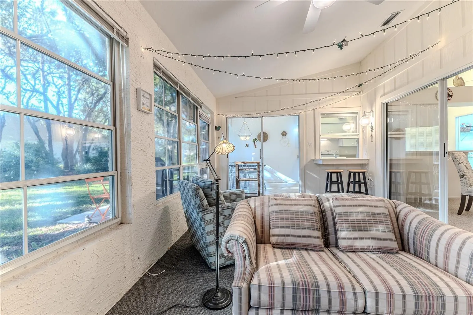 Step outside to the amazing lanai, accessible through sliding glass doors from both the kitchen and living room. This tranquil space overlooks lush green space with mature shade trees and lovely gardens, where you can relax while listening to birds chirping and watching squirrels play. Just beyond the lanai is a small concrete pad, perfect for your grill.