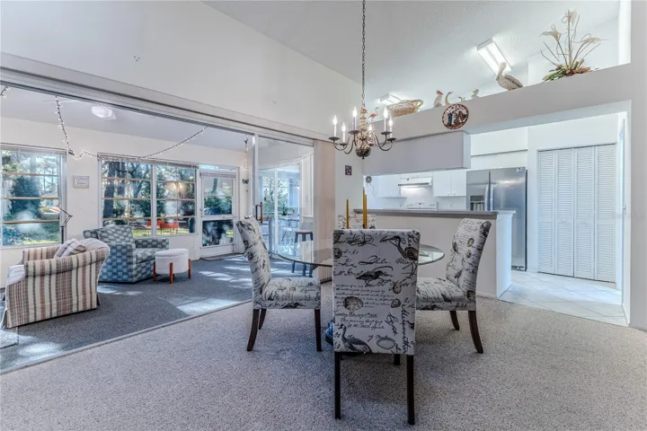 Welcome to this charming and well-maintained villa offering comfort and serene views. Enter through the front door into a bright living and dining room combination featuring vaulted ceilings, a ceiling fan, a solar tube for added natural light —creating an open, airy feel.