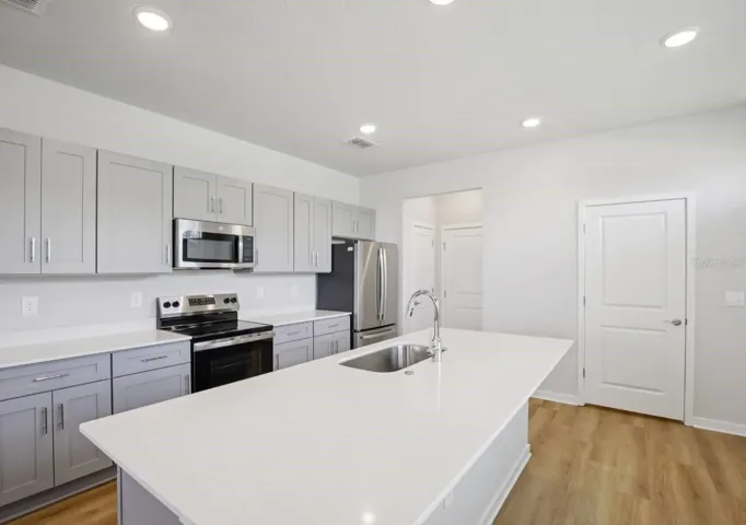 The Bradenton floor plan offers 1,678 sq ft of thoughtfully designed living space featuring 4 bedrooms, 2.5 bathrooms, and a 2-car garage. The open-concept main level showcases a spacious living and dining area, a contemporary kitchen with a large center island, quartz countertops, stainless steel appliances, and ample cabinet space—perfect for everyday living and entertaining.