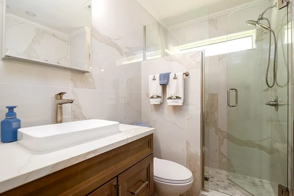 HIGHLIGHTS & UPGRADES Impact (Hurricane) windows and doors installed in late 2023 (insurance approved, which resulted in a significant reduction in the homeowner’s insurance rate)! New water heater in late 2023 and new HVAC IN 2020.Two spacious bedrooms & two beautifully redesigned bathrooms. Primary bathroom expanded by an additional three feet. Beautiful large format porcelain wall tiles in both bathrooms. Primary suite and second bedroom feature custom built-in closet systems. Luxury vinyl plank flooring throughout. GORGEOUS custom kitchen with: large center island, soft-close cabinetry, Quartz countertops & matching backsplash, under-cabinet lighting, and new print proof stainless-steel appliances. Recessed LED lighting with dimmers and designer window coverings! All solid-core interior doors. Smooth finish ceilings and walls for a sleek, contemporary look. Full-sized washer and dryer included. Stylish turnkey furnishings—many pieces from Pottery Barn, Crate & Barrel, and Wayfair—are included for a ready-to-enjoy living experience. Roof replaced in late 2024/2025, offering long-term durability. Whether you’re looking for a year-round residence, a seasonal escape, or a smart investment rental property, this beautifully updated condo delivers unmatched quality, comfort, and modern living—all in a truly move-in-ready package.