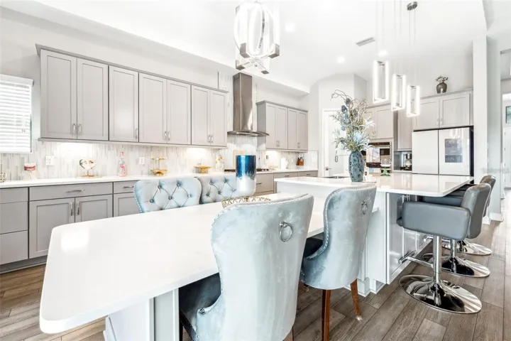 Gorgeous Luxury Pool/Spa Dream Home! This stunning new home features tile roof, pool/spa along with 2 gourmet kitchens! Boasting 4 bedrooms, 4 bathrooms, den/office or extra bedroom and a bonus room. This home is designed to exceed even the most discerning buyer’s expectations. Step inside to discover a world of sophistication, where modern design meets timeless allure. The heart of the home is the gourmet kitchen, adorned with pristine grey cabinets and quartz countertops. Whether you’re hosting a lavish dinner party or enjoying a quiet morning coffee, this space is sure to inspire culinary creativity. Luxury vinyl plank floors guide you through the expansive living areas, providing both durability and style. Natural light floods the interiors, accentuating the impeccable craftsmanship and attention to detail found. Three additional bedrooms give ample space for family and guests, along with a den space and upstairs bonus room. Step into the great room of this stunning home and prepare to be captivated by its soaring 12-foot ceilings adorned with richly stained wood beams. Outside, a tile roof adds to the home’s curb appeal, while a paver driveway welcomes your home in style. Relax in paradise with your heated saltwater pool/ spa, oversized covered lanai and gourmet outdoor kitchen is prefect for outdoor entertaining! With its prime location just off 301 minutes to Schools and Shops! This home offers effortless access to shopping, dining, entertainment, and top-rated schools. Experience the pinnacle of luxury living in this magnificent retreat, where every detail is thoughtfully curated for the most discerning homeowner. Schedule your private tour today and discover the lifestyle you’ve always dreamed of. Extras include: Paver Walkway, Total home Water Softner, Fenced Backyard and Professional Landscaping. Owner/Realtor. Call today this one-of-a-kind gorgeous Dream home.