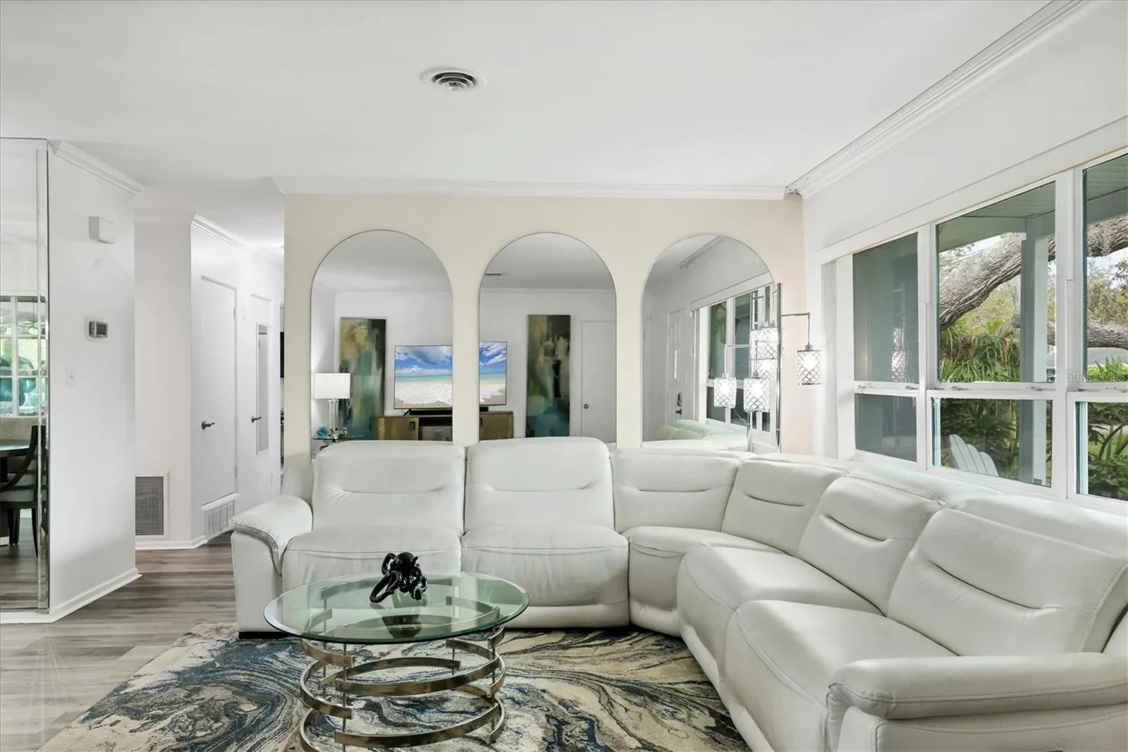 ATTENTION BOATERS! SALTWATER CANAL with NO BRIDGES TO LITTLE SARASOTA BAY and a short boat ride to newly opened Midnight Pass offering Gulf access in minutes – located in the highly sought-after Coral Cove neighborhood. This home offers a coastal vibe while being located in one of Sarasota’s most convenient West of the Trail locations. Close to Siesta Key and Downtown Sarasota – the best of both worlds. This home is high and dry and has NEVER FLOODED and delivers both peace of mind and effortless boating access. Set on an oversized, private, lushly landscaped 100’ x 145’ lot overlooking a serene saltwater canal, this 3 BED / 2 BATH / 3 CAR GARAGE has the space you need with endless possibilities. Convert the 3 car tandem garage into a 4TH BEDROOM / FLEX ROOM / WORKSHOP if desired. Take a close look at this area when you see it in person – lots of potential. A brand-new 33′ composite boat and fishing dock with water and electric hookups provides instant access to boating, fishing, and water sports just steps from your backyard. Attention Kayakers – there is a is a bird sanctuary and rookery just north of the mouth of the canal that will have you captivated. Outdoor living is elevated with a spacious covered patio—perfect for enjoying breathtaking sunsets and the calming sound of a fountain and HOT TUB where you can watch the sunset and relax in tropical paradise and there’s room for a pool for those who desire. Inside this BRIGHT, OPEN, happy home is filled with natural light and finished with luxury vinyl flooring throughout. The well-appointed kitchen is perfect for the chef in the family, while the charming Florida room offers the perfect space to unwind with morning coffee or evening cocktails. Three comfortable bedrooms and two beautifully updated bathrooms provide ample space for family and guests. The oversized garage, complete with a durable epoxy floor, offers generous storage for vehicles, boats, and gear. Furniture is optional, allowing flexibility for a fully furnished or unfurnished purchase. Notable upgrades include *** NEW ROOF (2025) , A/C system (2022) *** Full exterior repaint (2025) , New insulation for improved energy efficiency, updated lighting throughout, including recessed kitchen lighting, renovated bathrooms (2023). With no HOA restrictions, homeowners can fully embrace the waterfront lifestyle without limitations. Bring the boat and all of your other toys! Coral Cove is a designated bird sanctuary, offering a peaceful, nature-filled setting. Residents enjoy access to a private 2-acre neighborhood park featuring a boat ramp, day dock, and excellent fishing. The location is unbeatable—just minutes from Siesta Key Beach, downtown Sarasota, St. Armands Circle, top-rated schools, upscale dining and shopping, the Legacy Trail, and Downton Sarasota. Don’t miss this rare opportunity to own an upgraded waterfront home in one of Sarasota’s most desirable neighborhoods – this home is an ABSOLUTE MUST SEE!