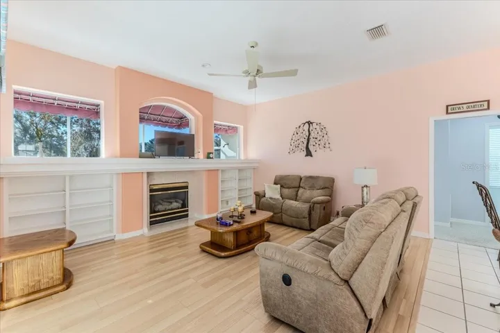 Welcome to this beautifully maintained, move-in ready, mostly furnished 2,355-square foot luxury POOL home showcasing a desirable split floor plan with three bedrooms plus a private office/flex space, three bathrooms and a 3-car garage. Ideally positioned along the 3rd fairway of the picturesque Glen Lakes Golf Course. From the moment you enter through the elegant front door, you’re greeted by soaring ceilings and an elegant formal living and dining space designed to impress. A private office/flex room sits just off the entry, offering flexibility for work or leisure or even a 4th bedroom. The expansive owner’s suite provides a peaceful retreat, featuring a generous walk-in closet and a well-appointed ensuite with a garden tub, separate walk-in shower, and private water closet. The heart of the home is the spacious kitchen, which opens seamlessly to the family room highlighted by a propane gas fireplace—perfect for entertaining or relaxed everyday living. A thoughtfully designed guest suite/in-law suite includes its own private bath with walk-in shower that also serves as a convenient pool bath. Two additional bedrooms are generously sized and share a full bathroom. Step outside to the screened lanai, where a custom pool and ample seating space create an inviting setting to unwind while taking in serene golf course views. The oversized three-car garage offers abundant space for vehicles, a golf cart, or a workshop. Notable improvements include an irrigation well, a roof installed in January 2020, hot water heater replaced in December 2012, and HVAC system installed in September 2005. There ae no CDD FEES in the private, guard-gated community of Glen Lakes. Residents who elect an optional social and/or golf membership enjoy an elevated country club lifestyle centered around an award-winning 18-hole golf course. Amenities include an elegant clubhouse with restaurant and 19th hole, banquet and event facilities, a well-appointed fitness center, pickleball and tennis courts, shuffleboard, and a vibrant selection of clubs and social activities. This move-in-ready residence is priced to sell and presents an exceptional opportunity for new owners to personalize while enjoying one of the area’s most sought-after communities. Home is being Sold As-Is With Right to Inspect. Home is NOT in a flood zone.