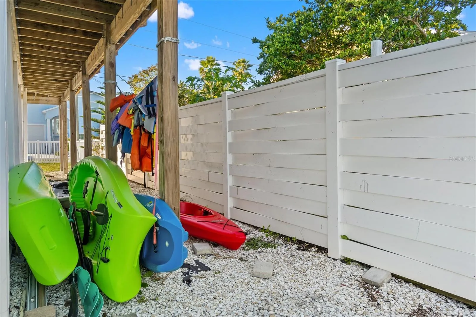 This is truly TWO PROPERTIES FOR THE PRICE OF ONE. The home sits on one fully fenced lot, plus an ADDITIONAL ADJOINING LOT that is also completely fenced and currently set up with a VOLLEYBALL COURT + COVERED CARPORT, perfect for BOAT OR TOY STORAGE. Double lots in Hernando Beach are extremely rare and provide added privacy, flexibility, and long-term value. Outdoor living is a major highlight. A WRAP-AROUND DECK AROUND THE ENTIRE HOME WITH NEW TREX DECKING creates usable outdoor space on every side.