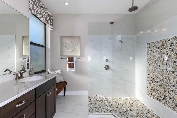 Pre-Construction. To be built. Pre-construction. To be built. Introducing the Salerno model—an elegant blend of style, comfort, and modern sophistication. This is one of many floor plans available to build on this lot. Offering 4 spacious bedrooms, 3 baths, and 2,056 square feet of refined living space, the Salerno features expansive living areas and seamless indoor-outdoor flow. From the moment you arrive, the impressive grand foyer welcomes you into a light-filled, open-concept living and family room—perfect for both everyday living and entertaining. The heart of the home is the designer kitchen, showcasing 42″ upper cabinets with crown molding, beautifully finished countertops, a walk-in pantry, and a large island with bar seating. Premium appliances include a built-in microwave, range, dishwasher, and disposal. The luxurious owner’s suite serves as a private retreat with abundant natural light and a spa-inspired ensuite featuring a tiled walk-in shower with glass enclosure, private water closet, and dual vanity with designer cabinetry and countertops. Guest bedrooms are thoughtfully positioned for privacy, while the tucked-away laundry room offers added storage and convenience. Finishes include plush carpeting in bedrooms and timeless tile in all wet areas. Enjoy outdoor living on the expansive covered lanai, ideal for morning coffee or evening gatherings. Additional highlights include a smart home security system, upgraded R38 and foam-injected insulation for energy efficiency, and a 2-10 home warranty. Located in the boutique community of Hidden Ridge, this exceptional home offers both luxury and convenience. Photos represent a previously built Salerno model with optional features and may not reflect the actual home.