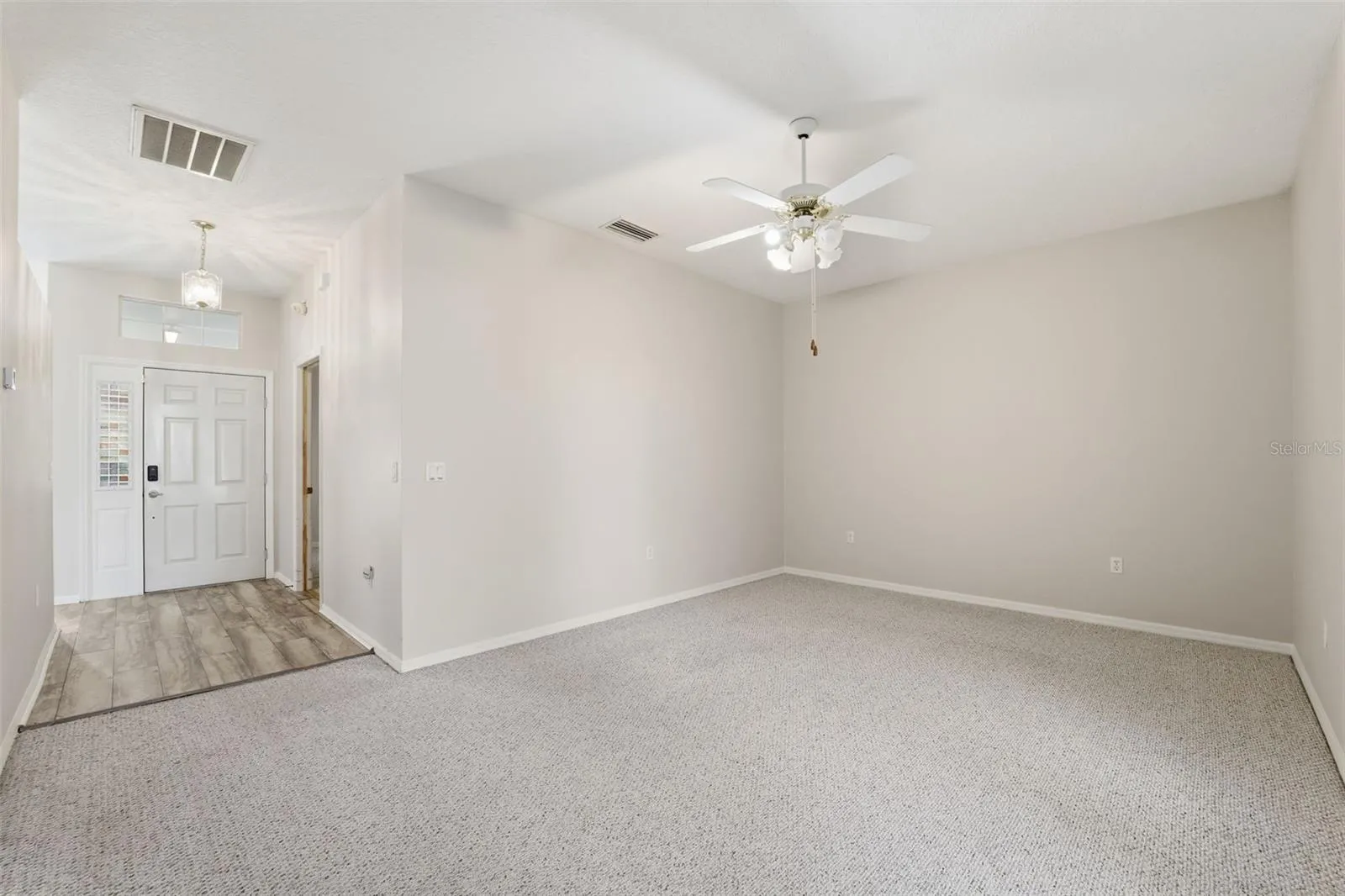 One or more photo(s) has been virtually staged. Welcome to this well maintained, single-story home in the desirable Royal Oaks Community in Inverness. Positioned on a lot with a neat lawn and irrigation system, you’ll be greeted by a paved driveway leading to the garage and a covered front entry with screened porch that brings in bright natural light. Inside you’ll find a smooth flow of luxury vinyl flooring in the main living areas. The kitchen offers generous cabinetry and counter space and opens to the dining area framed by windows that fill the space with daylight. The family room creates a comfortable central gathering spot with large glass doors and windows that connect to the sunroom for easy indoor-outdoor living. The primary bedroom is a peaceful retreat with a walk-in closet and bathroom with an accessible shower. The second bedroom also features a walk-in closet and sits near the full secondary bathroom with tub-shower combo and additional storage. The sunroom extends your living space with big windows and a finished floor, perfect for relaxing or enjoying views of the backyard. Laundry space is conveniently located in the garage. Royal Oaks offers a range of community amenities that enhance everyday living. The HOA covers grounds maintenance and community upkeep, and residents enjoy access to a community pool and recreation facilities as part of the association services. Utilities such as water, sewage, cable and internet are included in the HOA offering along with trash service and common area care. This means less upkeep for you and more time to enjoy the lifestyle this neighborhood offers. Living here puts you close to downtown Inverness with shopping, dining and local events, plus parks, lakes and outdoor trails like the Withlacoochee State Trail for biking and nature walks.