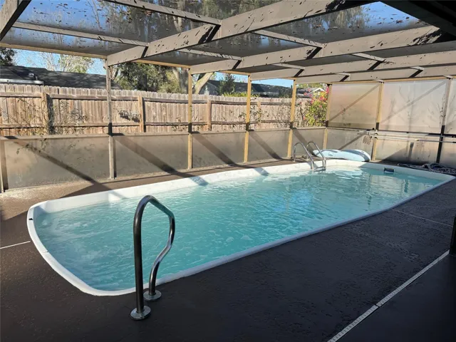 2/2/1 – POOL HOME – 12X24 DETACHED GARAGE/WORKSHOP BUILT IN 2020. – This home features a NEW ROOF installed in 2021 and a NEW FRONT DOOR added in 2024. It boasts laminate flooring throughout, an UPDATED guest bathroom, REMODELED kitchen cabinets and countertops, as well as a NEW refrigerator. There is NO HOA and it is located in a NO FLOOD ZONE. The oversized back porch is equipped with privacy screening, providing ample outdoor space for entertaining, outdoor cooking, or enjoying your morning coffee in the warm FLORIDA SUNSHINE. Schedule an appointment to see this home, you won’t be disappointed.