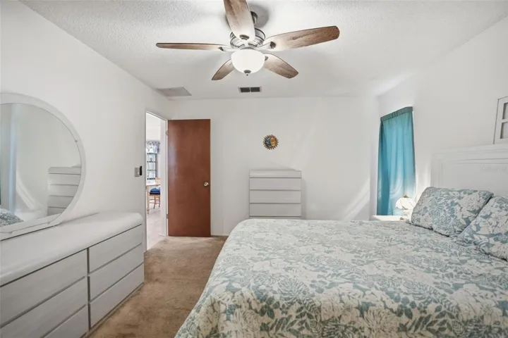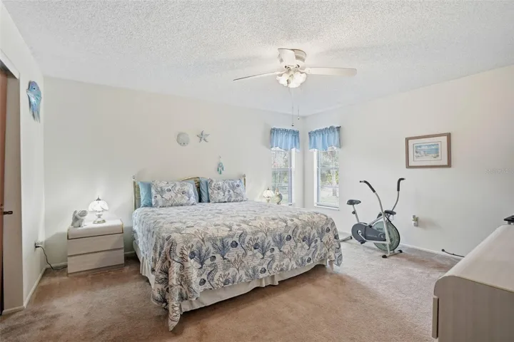 Welcome home to this beautiful, move-in-ready 3-bedroom pool home situated on a spacious 0.46-acre lot overlooking Lake Century. Upon entry, you’re greeted by soaring cathedral ceilings and new laminate flooring that enhance the home’s bright, open feel. The split floor plan offers both privacy and functionality. This home has a Generously sized primary bedroom designed for comfort and versatility. The kitchen overlooks the large screened-in pool and lake, creating the perfect setting for entertaining or relaxing. Enjoy Florida summers soaking in your private pool, with plenty of space to unwind on the covered patio. With no rear neighbors, this home backs directly to Lake Century—currently dry, but known to fill during the rainy season, adding a beautiful natural backdrop. Additional highlights include an oversized 2-car garage ideal for extra storage, a NEW roof and AC installed in 2023 (both with transferable warranties), and a LeafFilter gutter system, also with a transferable warranty. Sprinkler System is on a well. Conveniently located close to shopping and medical facilities, this home truly has it all.