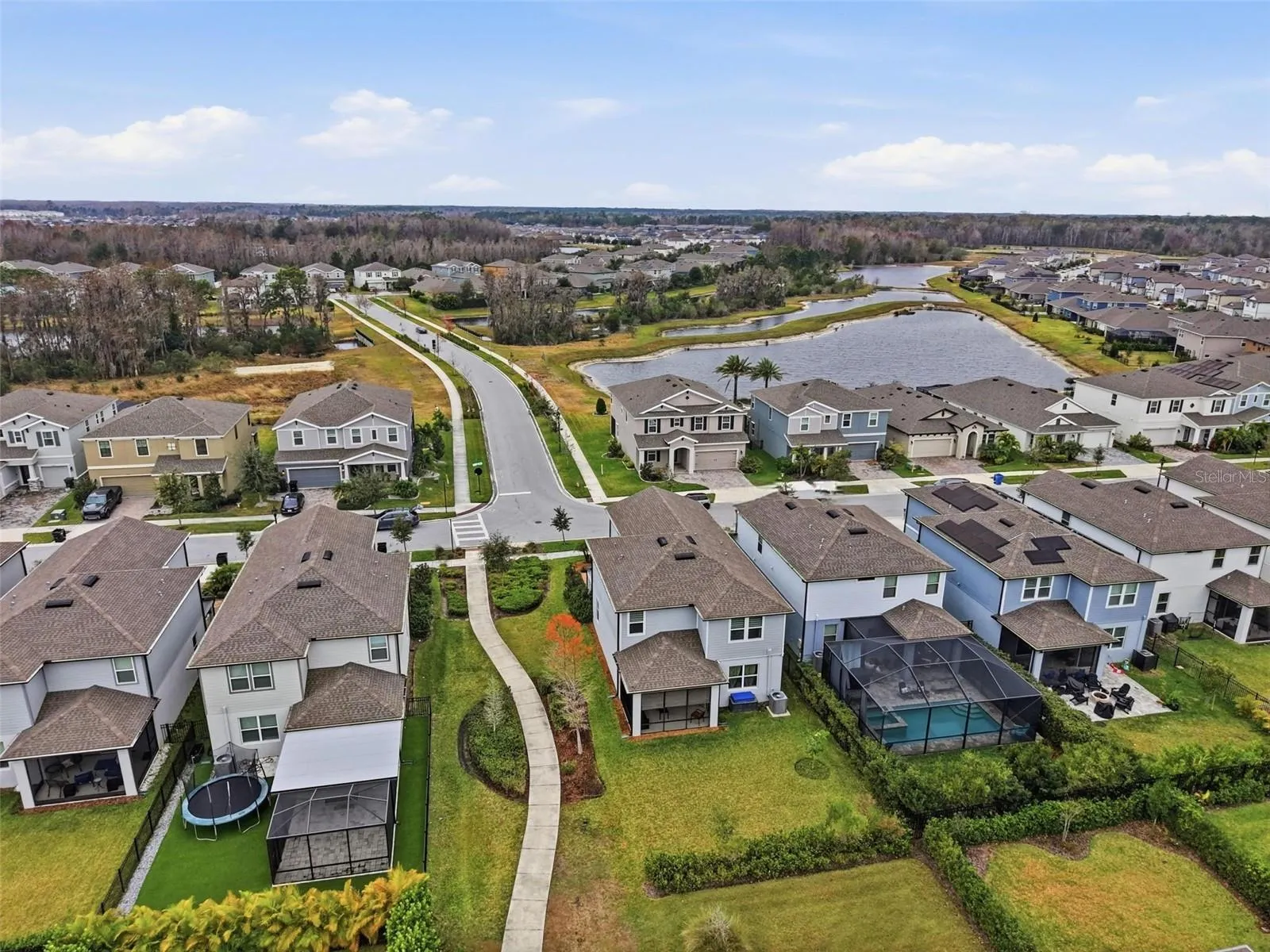 Built in 2021 and designed with family living in mind, this beautifully upgraded home offers space, comfort, and a truly walkable lifestyle in one of the area’s most desirable communities. Enjoy luxury vinyl flooring throughout, fresh interior paint, and upgraded lighting, fans, faucets, and fixtures that create a bright, welcoming feel from the moment you step inside. The open kitchen is perfect for everyday life and entertaining, featuring upgraded cabinetry, stone detail beneath the island, and a layout that keeps everyone connected. A whole-house water softener and reverse osmosis system with a lifetime warranty adds comfort and convenience for busy households. With 5 bedrooms and 3 full bathrooms, there’s room to grow, work, and relax. The spacious primary suite includes a custom closet organizer, while thoughtful tech upgrades like smart switches throughout the home and hardwired security cameras offer peace of mind. Step outside to the screened-in lanai, ideal for family dinners, playtime, or winding down after a long day. There is plenty of room to add a pool, as having a corner lot offers more space. Best of all, the home is walkable to Bexley Elementary School, as well as nearby soccer fields and a community dog park, making it easy to enjoy an active, connected lifestyle without ever needing to get in the car. Golf carts are okay in this neighborhood, and you can take a ride to one of the 2 pools, or even up to the HUB of Bexley for Dinner, entertainment, and additional activities without ever leaving the neighborhood. Modern, move-in ready, and perfectly positioned for family life—this home checks every box.
