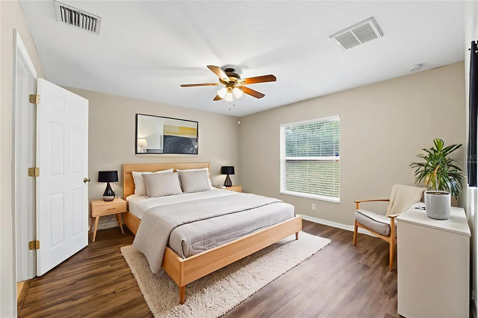 One or more photo(s) has been virtually staged. Step into this warm and welcoming three-bedroom, two-bath home with a two-car garage, set on a spacious 0.42-acre corner lot where everyday living feels easy and comfortable. A neatly kept front lawn and a welcoming walkway lead you to the double entry doors, opening into a bright tiled foyer with natural light. Just ahead, the living room feels open and inviting with wood-style laminate flooring, high ceilings, and multiple windows that bring the outdoors in, while a glass-panel door provides access to the rear porch, creating a natural flow between indoor and outdoor spaces. The dining area sits conveniently next to the kitchen, featuring laminate flooring and several windows that make everyday meals feel light and welcoming. The kitchen offers tile flooring, a vaulted ceiling that adds character, solid wood cabinetry and a functional layout that flows into the breakfast nook, where tile flooring and a window overlooking the backyard create a cozy spot for morning coffee. Tucked away for privacy, the primary bedroom features laminate flooring, and two generous closets that lead into the en suite bathroom, complete with tile flooring, dual vanities, and a glass-enclosed walk-in shower. Bedroom two is conveniently located near the main living areas and offers wood-style flooring and a bright window, while bedroom three provides similar features, making it ideal for guests, a home office, or additional living space. The second bathroom includes tile flooring, a tub and shower combination, and a window that keeps the space feeling fresh. The enclosed rear porch feels like a peaceful retreat with a finished floor, covered ceiling, and large windows overlooking the backyard, while the rear exterior continues with a well-maintained lawn supported by an irrigation system. Living here places you close to Weeki Wachee Springs State Park for kayaking and clear-water adventures, nearby Gulf beaches for boating and sunsets, the Suncoast Parkway for easy commuting, and a variety of shopping, dining, and everyday conveniences that make life here truly enjoyable.
