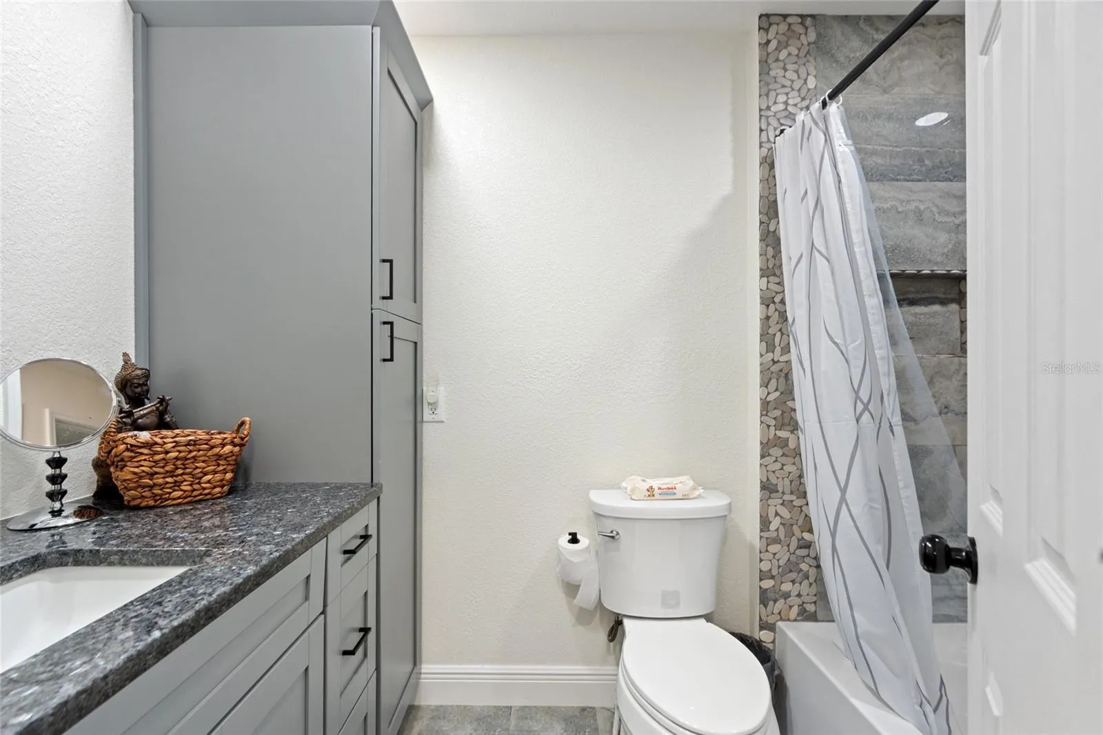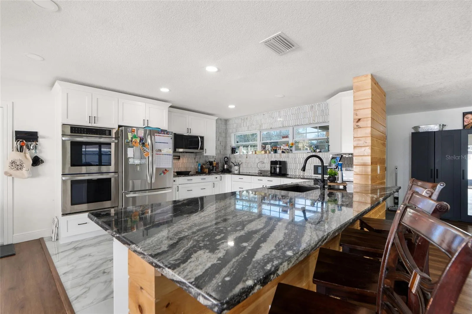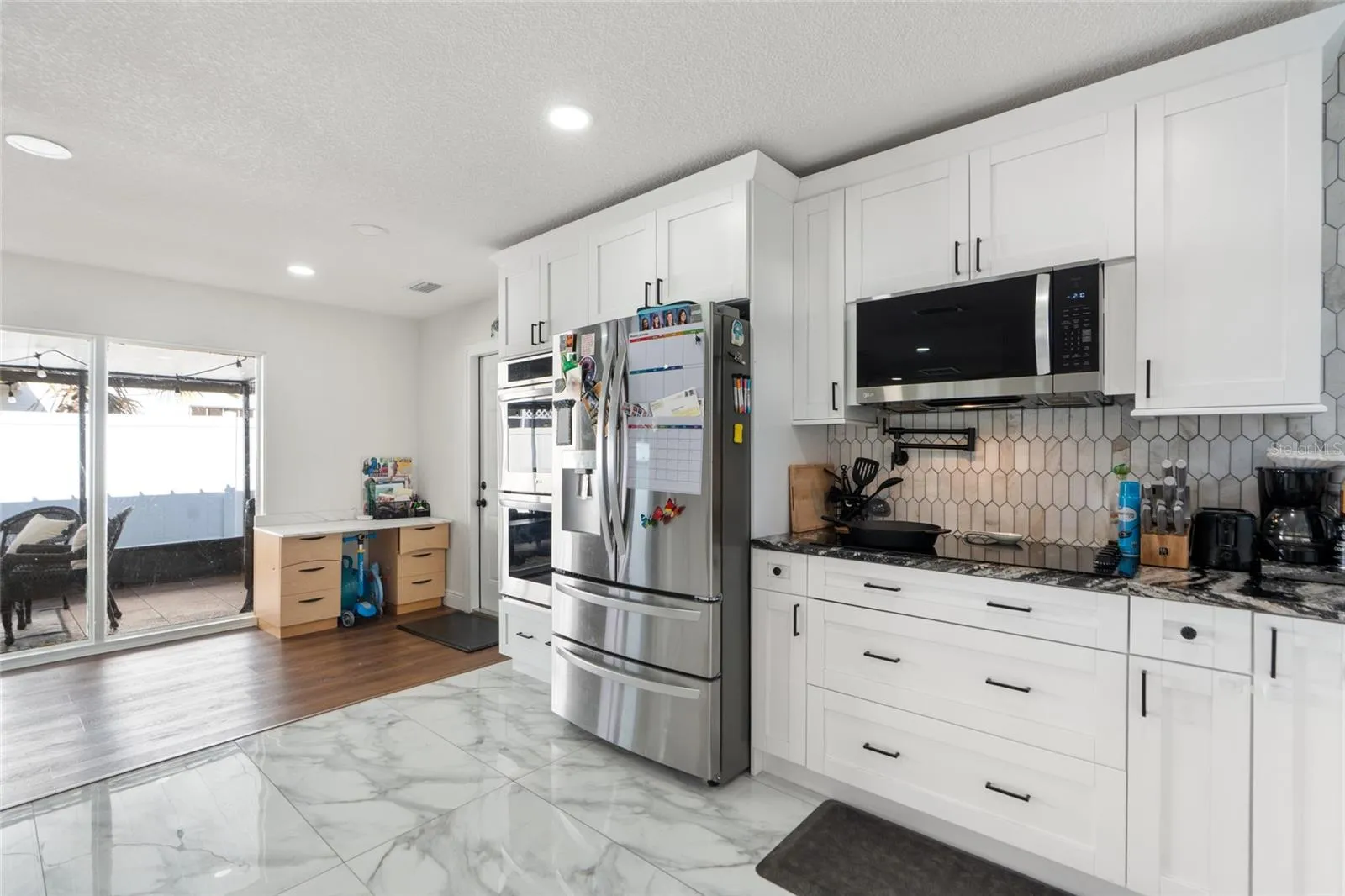 This charming family home sits proudly on a desirable corner lot in a peaceful, established neighborhood. It’s the perfect place to put down roots and create lasting memories. Step inside to discover a spacious, thoughtfully designed layout ideal for everyday living and entertaining. The heart of the home is the stunning, large kitchen—fully equipped with a double oven, generous cooking range, pot filler, custom cabinets, sleek granite countertops, and abundant storage drawers and cabinets. The expansive living room and dining area provide plenty of room -offering comfortable lounging spaces for friends and family gatherings. No carpet anywhere—beautiful new luxury vinyl flooring flows throughout the entire home, complemented by elegant new tile in the kitchen and bathrooms. The primary suite and additional bathrooms have been completely remodeled with modern fixtures, tiled showers and tubs, quartz countertops, updated vanities (including a luxurious vanity area in the primary bath), and fresh new toilets. Major updates make this home truly move-in ready: hurricane-proof windows (2015), new roof (2018), pool and deck resurfaced (2021), entire property enclosed by a brand-new vinyl fence (2023), and a full home renovation completed in 2023. Highlights include: – Brand-new LG stainless steel appliances; – New LG washer and dryer; – All cast iron plumbing replaced; – Recessed lighting and new ceiling fans in every room; – Updated AC system with an extra return for improved airflow; – Fresh exterior paint (2024); – Professionally installed 10×12 TUFFshed (2025); – Large oak trees removed for better yard usability (2025); – New garage door system (2026). Outside, enjoy Florida-style living at its best: an extra-long driveway, two patios for relaxing or dining al fresco, a large pool, and a fully fenced backyard with ample space for play and privacy. The 12×10 shed provides excellent storage for toys, equipment, and outdoor gear. Pride of ownership shows in every detail—this meticulously updated home combines comfort, modern conveniences, and a welcoming community. Ready for its next family to love it!