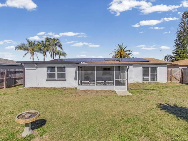 Holiday Lake Estates! Never flooded and comes fully furnished!! This charming lakefront community offers the perfect setting for Florida living, and this home delivers it all with 3 bedrooms, 2 bathrooms, a 1 car garage, and fantastic curb appeal. Inside, you’ll appreciate the consistent flooring throughout and the split floorplan that offers comfort and privacy. The spacious living area welcomes you in and flows effortlessly into the updated kitchen with stone countertops, where natural light highlights the many thoughtful updates. The roof was replaced in 2016, and the home includes assumable solar panels for under $150 per month. Both bathrooms feature updated vanities, and stop the search — your dream home awaits at 3142 Pinon Dr in beautiful Holiday Lake. Outside, you’ll fall in love with the large covered back porch and fully fenced backyard—perfect for enjoying the outdoors year-round. The location is unbeatable: just 28 miles to TPA, minutes from the iconic Tarpon Springs Sponge Docks and Fred Howard Beach, and close to parks and trails like the Pinellas Trail, Key Vista Park, and Anclote Park with boat ramps. Families will love nearby attractions such as the Tarpon Springs Aquarium, along with endless restaurants, shops, and conveniences. If you’re looking for a centrally located home at an affordable price, this one checks every box—see it before it’s gone!