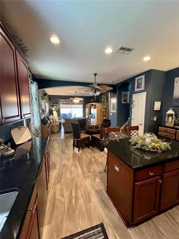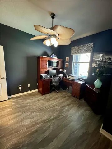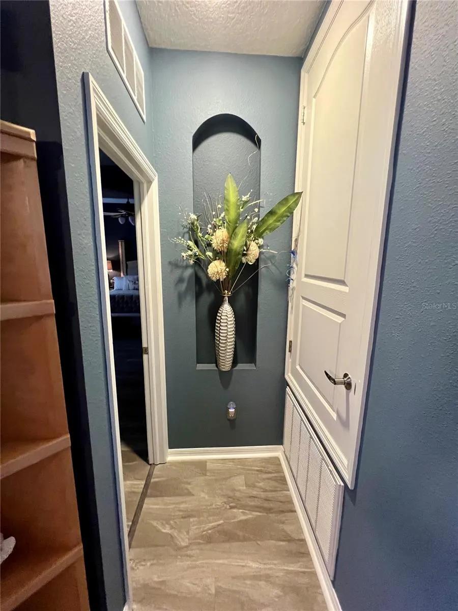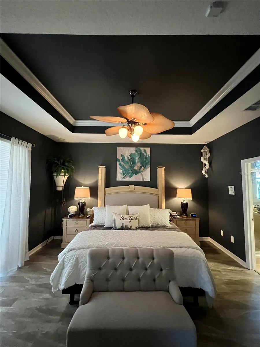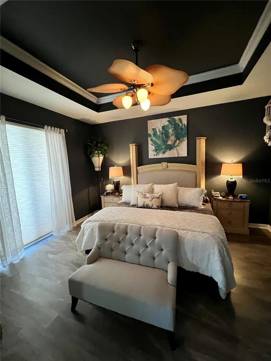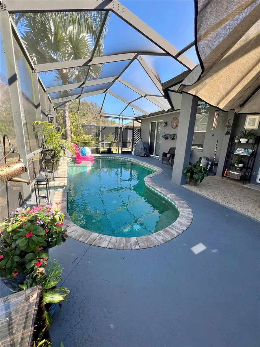This home could be your next dream home. Offering 2,395 square feet, it sits on a beautiful lot surrounded by Old Florida trees and natural scenery. Enjoy your morning coffee on the back porch beside the pool while watching wildlife wake up around you. The meticulously maintained landscaping provides exceptional curb appeal. Step through the front door and pass the formal dining room into a bright, open-concept living space with clear sightlines straight through to the backyard. Updated light fixtures and beautiful vinyl flooring create a stylish, low-maintenance interior, complemented by a convenient central vacuum system. The kitchen features solid wood cabinetry, granite countertops, and a spacious island with plenty of room for food prep and gathering. The primary suite boasts elegant tray ceilings and a cozy sitting area—perfect for a home office with a view. The master bath includes double sinks, custom closet cabinetry with built-in dressers, and a relaxing garden tub to soak the day away. Upstairs, a private bedroom with its own closet and bathroom offers an ideal space for guests or anyone seeking extra privacy. This home has been lovingly maintained and is truly move-in ready.