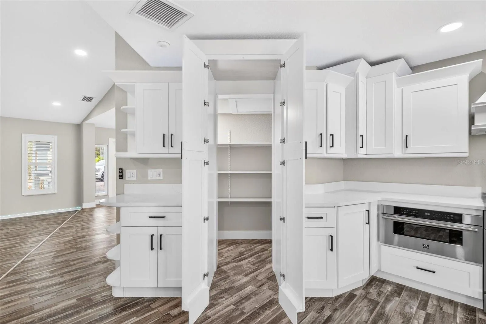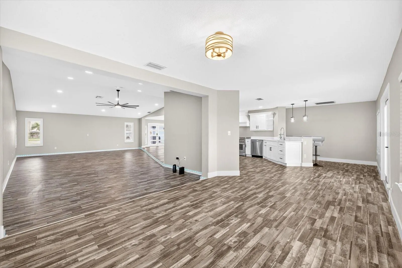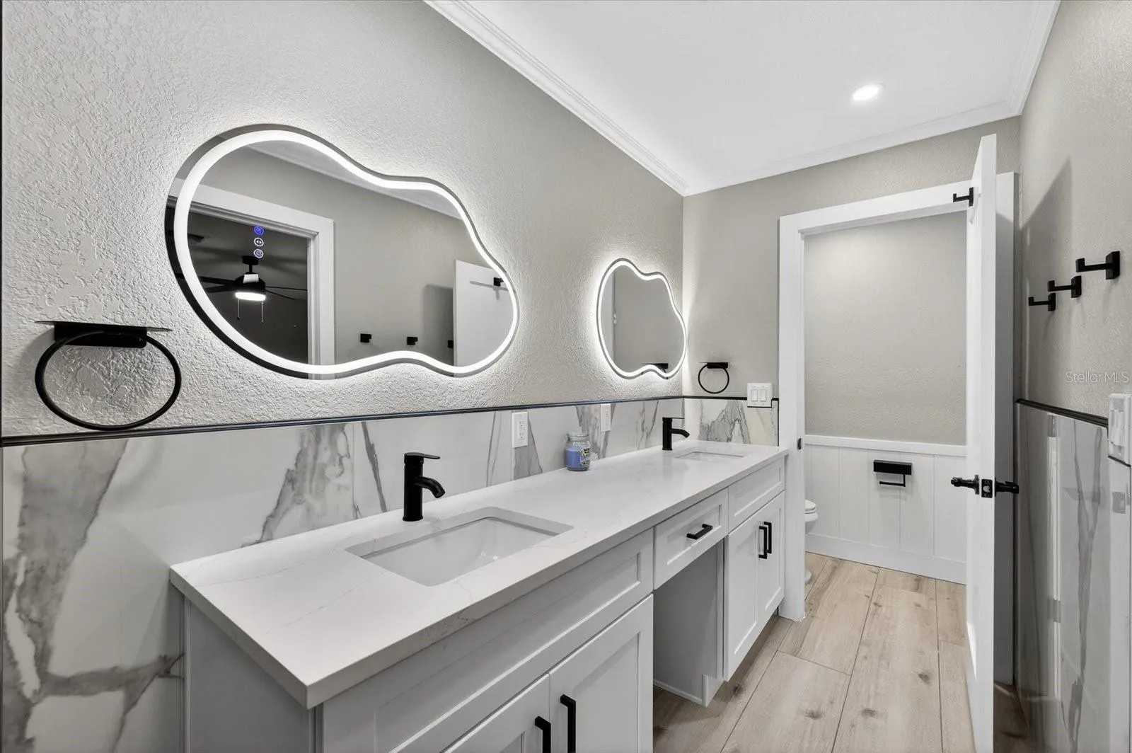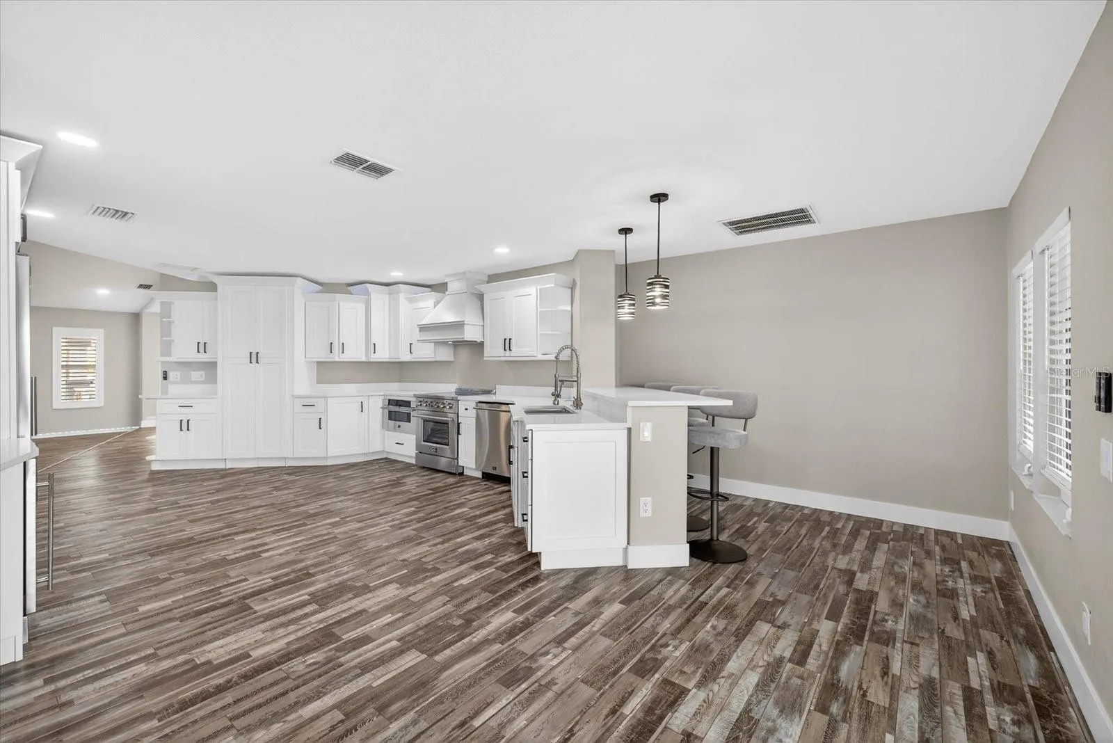 Completely renovated from top to bottom, the home features high-end appliances, a walk-in pantry, and thoughtfully curated designer finishes throughout. Modern LED lighting integrated into the flooring adds a dramatic architectural touch, while LED accent lighting above the kitchen cabinets enhances both style and ambiance. The spacious layout is ideal for entertaining and everyday living.