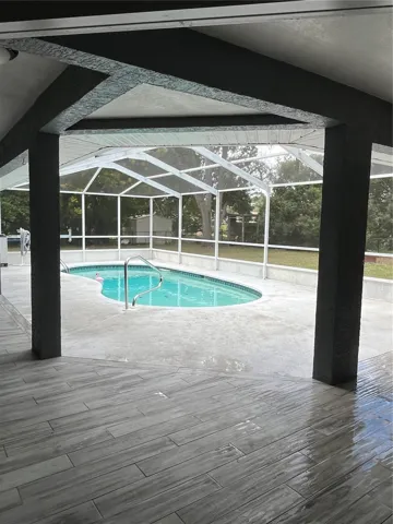Welcome home to this beautiful custom-built spacious 3 bedroom, 2 bath pool home, on a corner lot offering a thoughtful layout and timeless design. Enter your double French doors and look straight out through a triple slider that fully retracts giving you direct access to the lanai and pool area. Soaring ceilings immediately greet you upon entry and enhance the sense of space and natural light throughout. To your left is the primary bedroom with a slider to the pool deck and private bath boasting a granite top and luxurious wood cabinets with ample drawer space. You’ll find an upgraded Kohler toilet, garden tub, and separate shower stall that’s been freshly tiled. This home features a long living room with a giant ceiling fan, and formal dining room right off the kitchen, illuminated by an oversized chandelier. The kitchen is the heart of the home with ample cabinet space, double pantries, breakfast bar, and a charming breakfast nook that overlooks the sparkling pool area, creating the perfect spot for morning coffee. Pass through the kitchen into the interior laundry room with direct garage access, designed as a practical drop zone to keep the main living areas clean and organized. It includes a wash sink and storage closet with shelving above the washer and dryer connections. The home is fully tiled throughout, extending under the covered patio to the pool deck, making for easy maintenance and seamless indoor-outdoor living. Two additional large bedrooms occupy the front and rear of the home with a well placed family room located between them acting as a buffer for enhanced privacy and separation. The guest bath offers a tiled tub/shower combo, upgraded Kohler toilet, granite counter top, and large wooden cabinet with plenty of drawers. Step outside to the lanai surrounding the pool and enjoy the oversized, fully fenced yard, ideal for gatherings, pets, or simply enjoying your private outdoor retreat. This home combines comfort, functionality, and space—an exceptional opportunity you don’t want to miss. It is nestled in the heart of Spring Hill close to Gulf beaches, springs, and nature preserves.