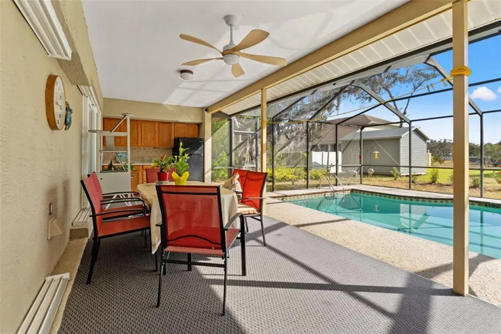 Outside, enjoy a fantastic pool area with kitchenette and outdoor refrigerator, perfect for Florida living. Garden enthusiasts will love the variety of mature fruit-producing trees, including peach, avocado, loquat, cherry, olive, pear, passion fruit, banana, pineapple, and fig. A chicken coop is already in place for those interested in fresh eggs and a touch of homestead charm.