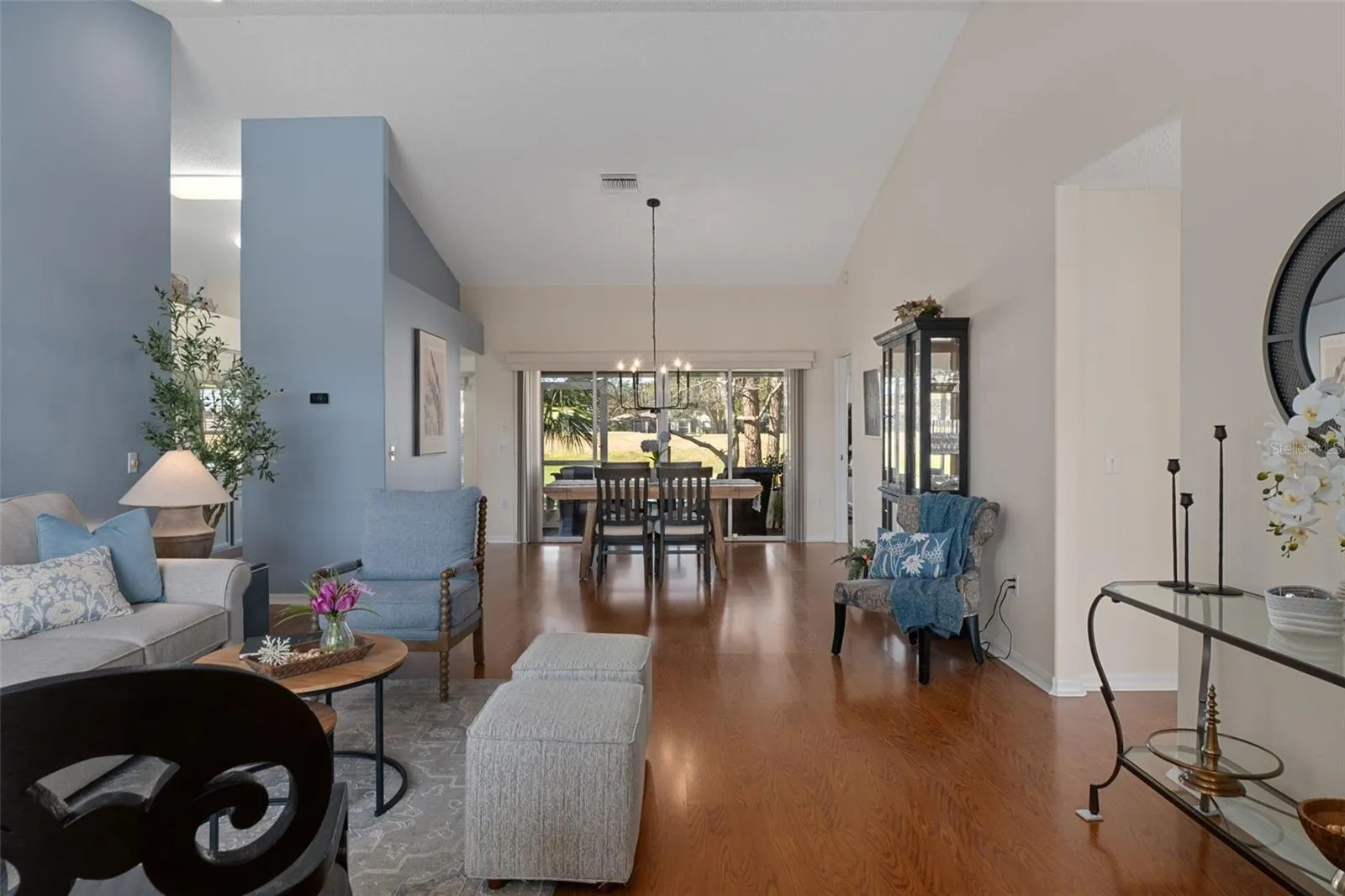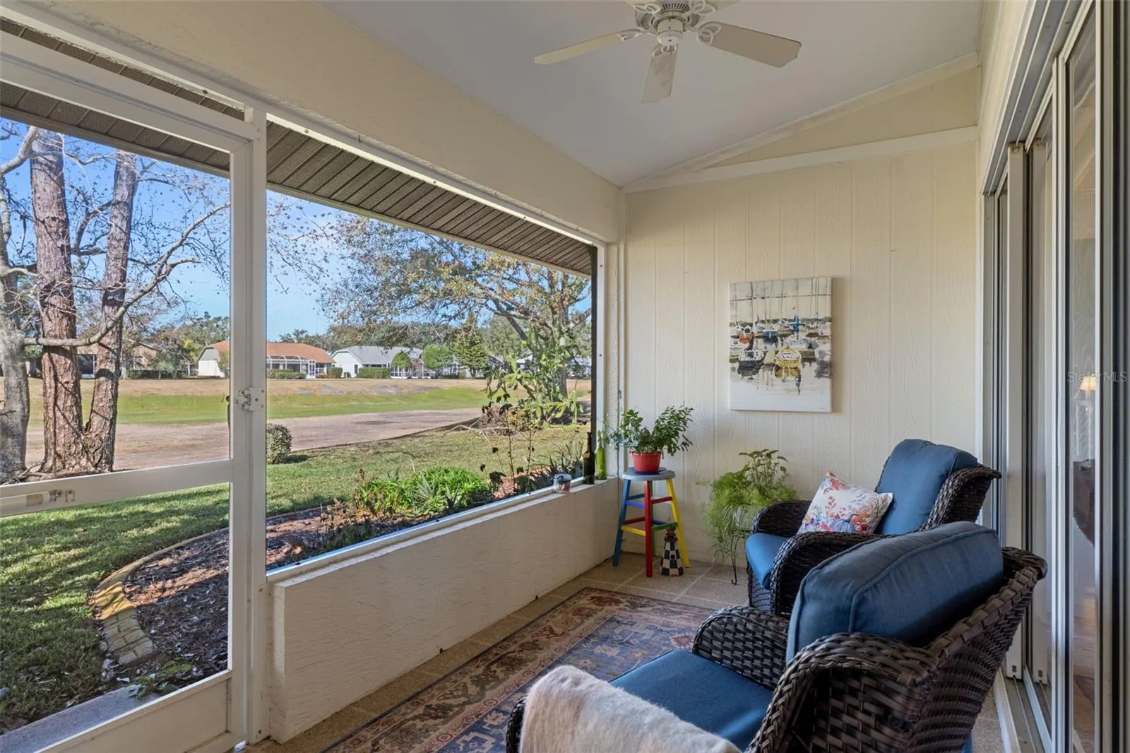 Stunning Golf-Course Villa in Heritage Pines! Welcome to carefree Florida living in this beautifully updated villa overlooking serene golf course views with no rear neighbors. This spacious residence offers two bedrooms, two bathrooms, and a two-car garage, all designed with comfort and style in mind. The open floor plan is enhanced by gorgeous laminate and ceramic tile flooring, fresh interior and exterior paint, and a bright, modern kitchen featuring updated and attractive cabinetry, gorgeous quartz countertops, and newer stainless-steel appliances. Recent upgrades provide peace of mind, including a roof replaced in 2022, AC system (2018) with Nest thermostat, and a large-capacity hot water heater (2021). The convenient inside laundry room includes a newer washer and brand-new dryer. Step outside to the screened rear porch and enjoy tranquil golf course views—perfect for morning coffee or relaxing sunsets. The home may be sold fully furnished if desired, making it truly move-in ready. Located in the 24-hour gated, guard-secured community of Heritage Pines, residents enjoy an unmatched resort-style lifestyle. Amenities include a newly renovated clubhouse, restaurant with amazing chefs and bar, performing arts center, heated pool and jacuzzi, library, craft and woodworking rooms, and countless social clubs and activities. Stay active with golf on the pristine resident-owned course, pickleball, tennis, bocce ball, billiards, yoga, aerobics, and more. The HOA fee covers high-speed internet, cable, lawn care, and pest control, allowing you to focus on enjoying life. Conveniently located near the Tampa Bay beaches and the natural beauty of Florida’s Nature Coast, this home offers the perfect blend of relaxation, recreation, and community. This is more than a home—it’s an opportunity to embrace a vibrant, resort-like lifestyle in a welcoming community. Schedule your private showing today and start your next chapter at Heritage Pines.