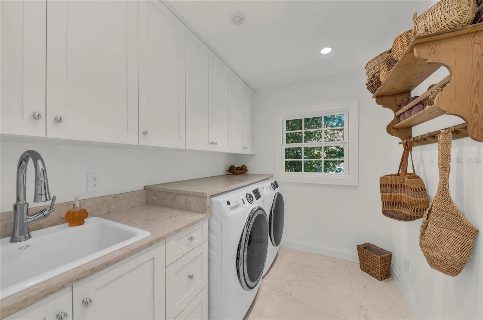 Step into modern luxury at this canal-front masterpiece on the south end of Longboat Key. Nestled in the premier Country Club Shores neighborhood, this 2024-effective-year renovation seamlessly blends classic Florida charm with cutting-edge innovation. Built with top-tier materials and state-of-the-art systems, this home offers sophisticated waterfront living in an unrivaled location. The southeastern exposure provides an abundance of natural light and water views. Everything has been addressed with this custom renovation, and the fully restored interior showcases thoughtful upgrades throughout, including Lutron programmable lighting, a German-designed kitchen lighting system, new plumbing and electrical, impact windows and doors, a must-see chef’s kitchen, instant hot water delivery and a whole-home water filtration system. Coral stone floors on the main level and hardwood flooring above complement the refined design, curated by the owner, a professional interior designer. This residence offers three bedrooms and three-and-a-half baths, including a full-floor principal suite featuring a sitting room, private balcony with Sarasota Bay views, and generous closet space. A sizeable living room designed for entertaining separates the en-suite guest wing from the main living areas. The kitchen includes custom cabinetry, high-end appliances and a breakfast room overlooking a private front courtyard. Additional main-floor spaces include a library or game room, powder room, laundry room, exercise room and a framed, wired area for a future elevator. Outdoors, lush tropical gardens envelop the entire property, creating a tranquil and Zen-inspired sanctuary leading to a covered lanai overlooking a resort-style pool and spa, with expansive patios ideal for entertaining. The canal-side setting includes a private dock with a boat lift and mooring capabilities for a larger vessel with no bridges to the bay and access to the Gulf in minutes. Enjoy sunrises over Sarasota Bay and amazing sunsets and water activities from your designated beach access just a short stroll away. The Country Club Shores neighborhood is known for coastal living, with low HOA fees and the location provides easy access to golfing, shopping, dining at St. Armands Circle and downtown Sarasota.