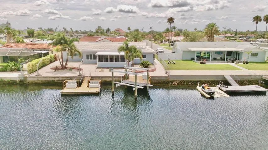 One or more photo(s) has been virtually staged. One or more photo(s) has been virtually staged. NO SHOES….NO SHIRT…NO PROBLEMS!!! WELCOME HOME TO YOUR WATERFRONT OASIS ON A DEEP WATER CHANNEL WITH APPROX 5-7 MIN (OR 1 MARGARITA) BOAT RIDE TO OPEN WATER IN THE GULF OF AMERICA!!! Come enjoy the sun and the sand with a drink in your hand…with no bottom!!! This almost 2500sqft luxury waterfront home comes with all the bells and whistles and is ready for you to call it home!! As you enter this 3 bed 2 bath complete custom home that offers plenty of additional living space that could easily convert to another bedroom if needed you are welcomed with bright vibrant colors and a kitchen that looks like it came our of a magazine!!! This home literally has everything you could want from low maintenance custom flooring throughout, a 13,000lb boat lift complete with power and a wash down, a separate floating dock, lots of waterfront windows in the bedrooms and living areas, and much much more. The owners suite is absolutely spectacular with no details spared with a well sized bedroom and a bathroom that would make even a 5 star hotel consider remodeling. The home has a very open floorpan as it was redesigned and opened up to ensure that no matter where you are….you can see the water. The additional bedrooms share a hall bathroom that is just as stunning as the primary suite bath. There is an extra Florida style room that could be used as a flex space for storing your fishing gear, tackle or scuba equipment, another bedroom, bar area, craft room, game room, or office space. Set in a golf cart-friendly community with private beach access and a civic center, this home offers both relaxation and recreation. Impeccably maintained, it boasts low-maintenance landscaping and energy-efficient windows to keep you cool during the summer months. Perfect for the seasonal owner or anyone who wants to keep their AC bill low and yard maintenance to a minimum so you can invest more of your time and money into being out and enjoying life on the open waters. Park your vehicles with ease in the pavered driveway and large 2-car garage. Crown molding adorns every room, while a designer electric fireplace adds warmth to the formal living space. Kick back and unwind in your screened lanai where you can watch the dolphins playing, the Pelicans flying, and the fish jumping. The exclusive Gulf Harbors Beach Club with its white sand shore and cabanas, picnic tables, benches, beach chairs, and BBQs for spectacular sunsets is just a block away; membership is optional at just $200.00 yr/per household. The proximity to the Gulf of America makes this property ideal for boating enthusiasts. Excellent fishing, diving, water sports, shelling, Island exploring right out your door! Conveniently located near golf, dining, shopping, and open waters, this coastal haven, and fisherman’s paradise provide a lifestyle beyond compare. Don’t miss the opportunity to make this your dream home. Schedule your showing today and experience the luxury of waterfront living!