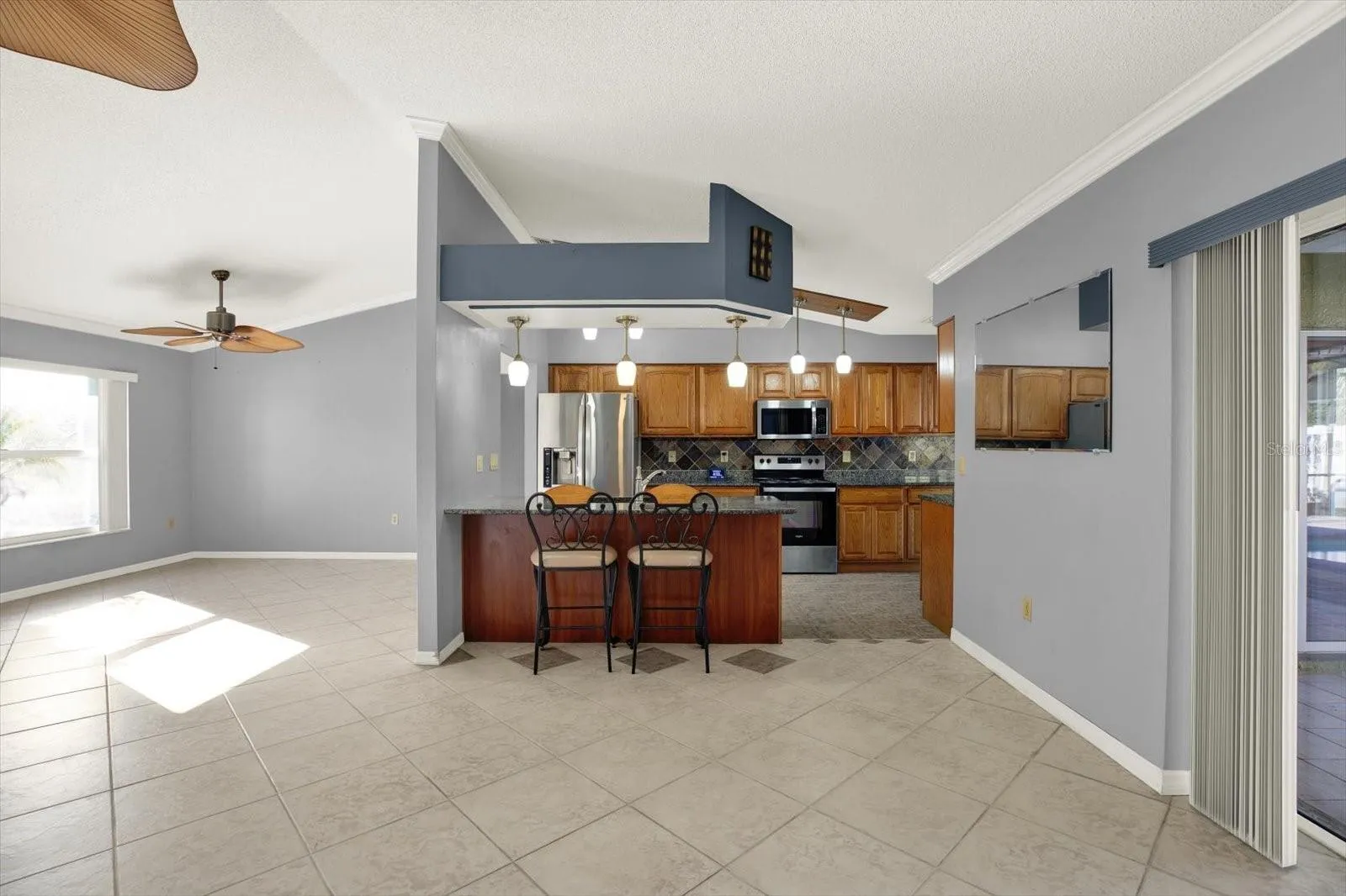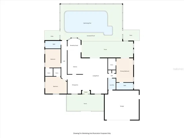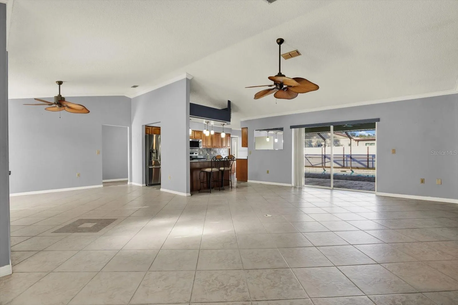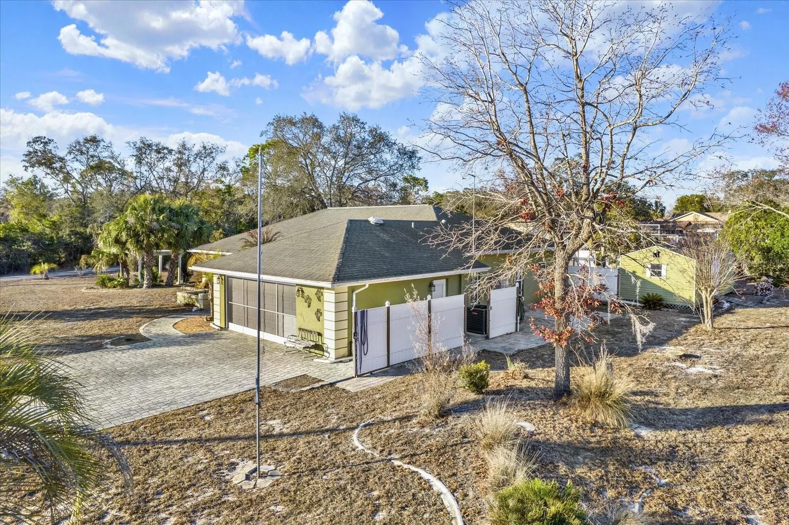 Welcome to this well-maintained 3-bedroom, 2-bath home with a 2-car garage, situated on a large, beautifully landscaped lot. Enjoy indoor-outdoor living with a screened pool, perfect for relaxing or entertaining. The updated, oversized eat-in kitchen offers ample space for gatherings, while tile flooring runs throughout the home for easy maintenance. All bedrooms feature walk-in closets, providing excellent storage. Additional highlights include a large storage shed and a full sprinkler system. A wonderful opportunity to own a home that blends comfort, functionality, and outdoor enjoyment.