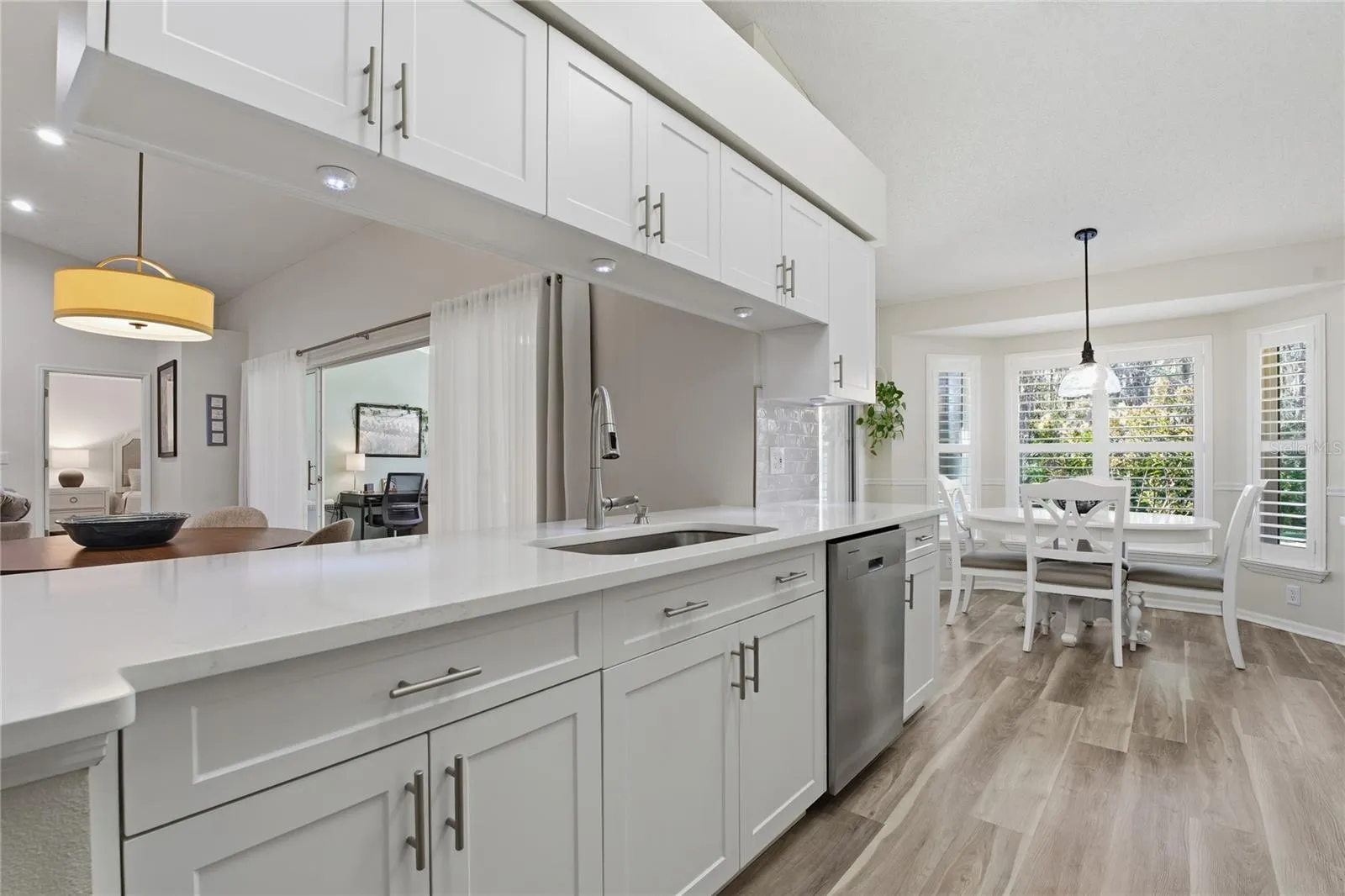 Welcome to 1133 Sweet Jasmine Drive, a beautifully updated home in the highly sought-after Heritage Springs, an active 55+ gated golf community in Trinity. This 2-bedroom, 2-bath, 2-car garage residence offers just under 2,000 sq ft of light-filled living space, featuring a Florida room and screened lanai overlooking a private pond, expansive conservation views, and an unusually large backyard—one of the finest lots in the community. Inside, the home has been completely updated with quartz countertops, shaker cabinetry with sliding pull-outs, luxury vinyl flooring, high ceilings, and unique designer lighting throughout. The kitchen is equipped with like-new, top-of-the-line appliances, perfect for everyday living and entertaining. Additional upgrades include impact-rated windows and doors (including the garage door), plantation shutters throughout, and meticulous attention to detail at every turn. Major systems have already been addressed: A/C (2015), Roof (2020), Screened enclosure & lanai (2021), and Hot Water Heater (2025)—offering true peace of mind. The home is impeccably maintained and truly move-in ready. Heritage Springs residents enjoy an exceptional lifestyle with golf, tennis, pickleball, clubhouse, pool, restaurant, and endless social activities. Conveniently located near Tampa International (TPA) and St. Pete-Clearwater (PIE) airports, plus easy access to shopping, dining, and some of the area’s best Gulf beaches. Premium lot. Pristine condition. Resort-style living.