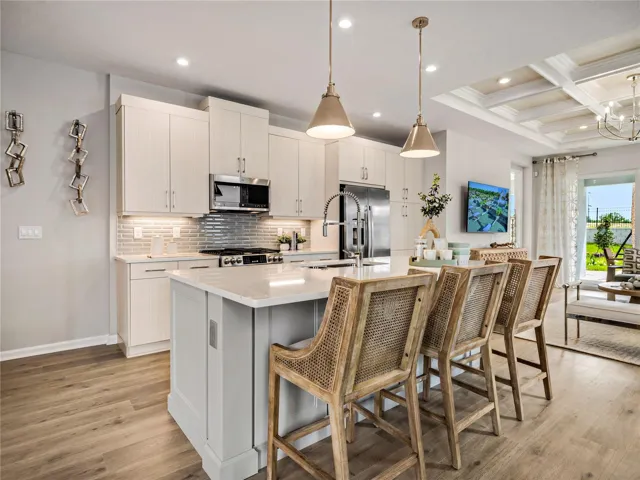 Pre-Construction. To be built. Cresswind at Hammock Oaks, a new active 55+ community by Kolter Homes, is situated in Lady Lake, FL, famously known as the “home of lakes and sunshine.” Located near The Villages the community is only minutes from Leesburg and convenient to Orlando. This gated community in Central Florida features Cresswind’s national award-winning “Set Yourself FREE” lifestyle program based on the cornerstones of Fitness, Relationships, Education and Entertainment. The resident-only clubhouse with a state-of-the-art fitness center and offers 55+ neighbors a place to gather and participate in social activities facilitated by a full-time Lifestyle Director. Outdoor amenities will include pickleball & tennis courts, walking trails, resort-style pool and spa, pool, event and entertainment areas. This flexible 2 Bedroom, 2 Bath home features a centrally located Kitchen overlooking an open floorplan that lets you live large in just the right amount of space. The Flex Room just off the Front Entry can be left open to increase your main living space or enclosed with an optional wall and double door to create a private fitness studio or home office. This Flex space also features the option to be converted into a 3rd Bedroom. You can personalize this floorplan with structural options, including Extended Lanai, Summer Kitchen, second-story Bonus Room, and more. To learn about all the ways, you can have this home built around you, contact a Cresswind at Hammock Oaks New Home Guide. Photos of a decorated model home are for reference only. Actual home will differ.