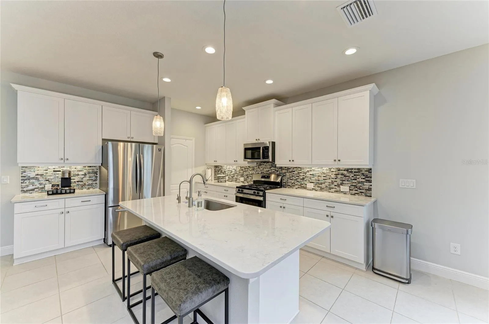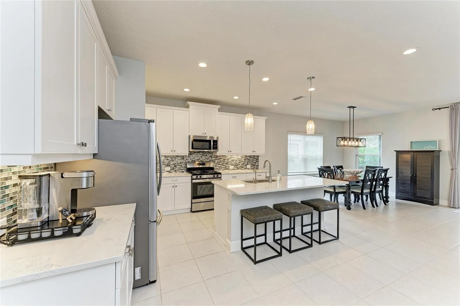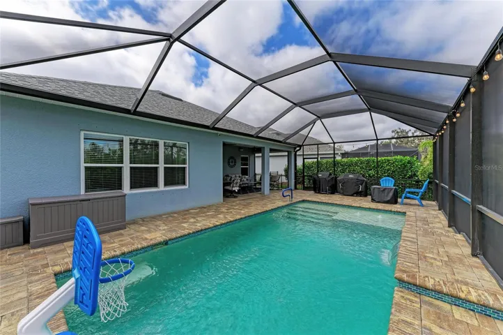 Pride of ownership is evident throughout this immaculate four-bedroom, three-bath home situated within the gated community of Silverleaf. The home boasts an open floor plan, with the main living area offering views of the private pool. Overlooking a preserve and featuring a fully fenced backyard, this property provides an ideal setting for families and pets to enjoy outdoor living. The current owners have invested over $100,000 in upgrades and enhancements, including a pool, pool cage, fencing, surge protection, security system with outdoor cameras, all ceiling fans, upgraded dining room and island fixtures, reverse osmosis system, whole house water softener and floor-to-ceiling tiles in all shower areas, among other improvements. Residents of Silverleaf enjoy a wide variety of amenities, such as a community pool and spa, soccer field, dog park, playground, basketball courts, and numerous walking trails. Silverleaf’s convenient location provides easy access to Tampa, St. Petersburg, Bradenton, and Sarasota. The area is close to restaurants, shopping, beaches, airports, sports venues, cultural activities, and more. This truly move-in ready home is prepared for you to begin living your ideal Florida lifestyle.